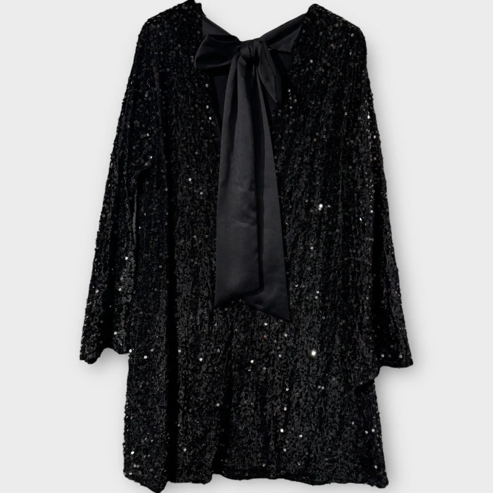 Découvrez notre robe en sequins et velours, idéale pour toutes occasions! Avec son encolure ronde et ses manches longues, cette robe ample convient à toutes les tailles (36 au 42). En plus, elle est composée de 95% polyester et 5% élasthanne pour un confort optimal. Disponible en noir, soyez la star de la soirée avec notre robe à sequins ! Faites-vous plaisir dès maintenant !