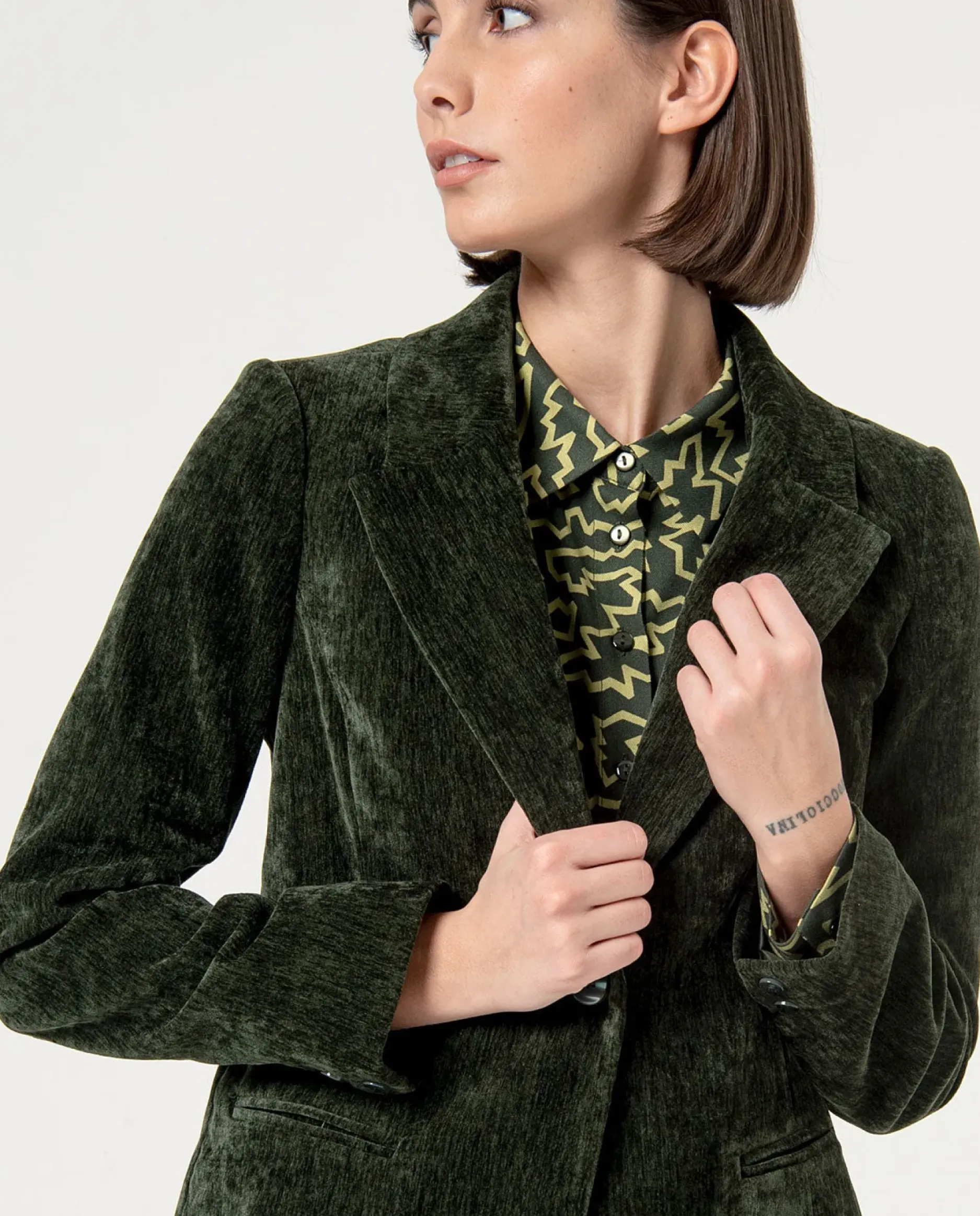 Offrez-vous un look élégant avec notre veste Edna ! Confectionnée en velours et dotée d’un col à revers, cette pièce vous assure une allure sophistiquée. Avec ses poches plastron et sa fermeture à un bouton, elle allie style et praticité. Parfaite pour les occasions spéciales ou au quotidien.