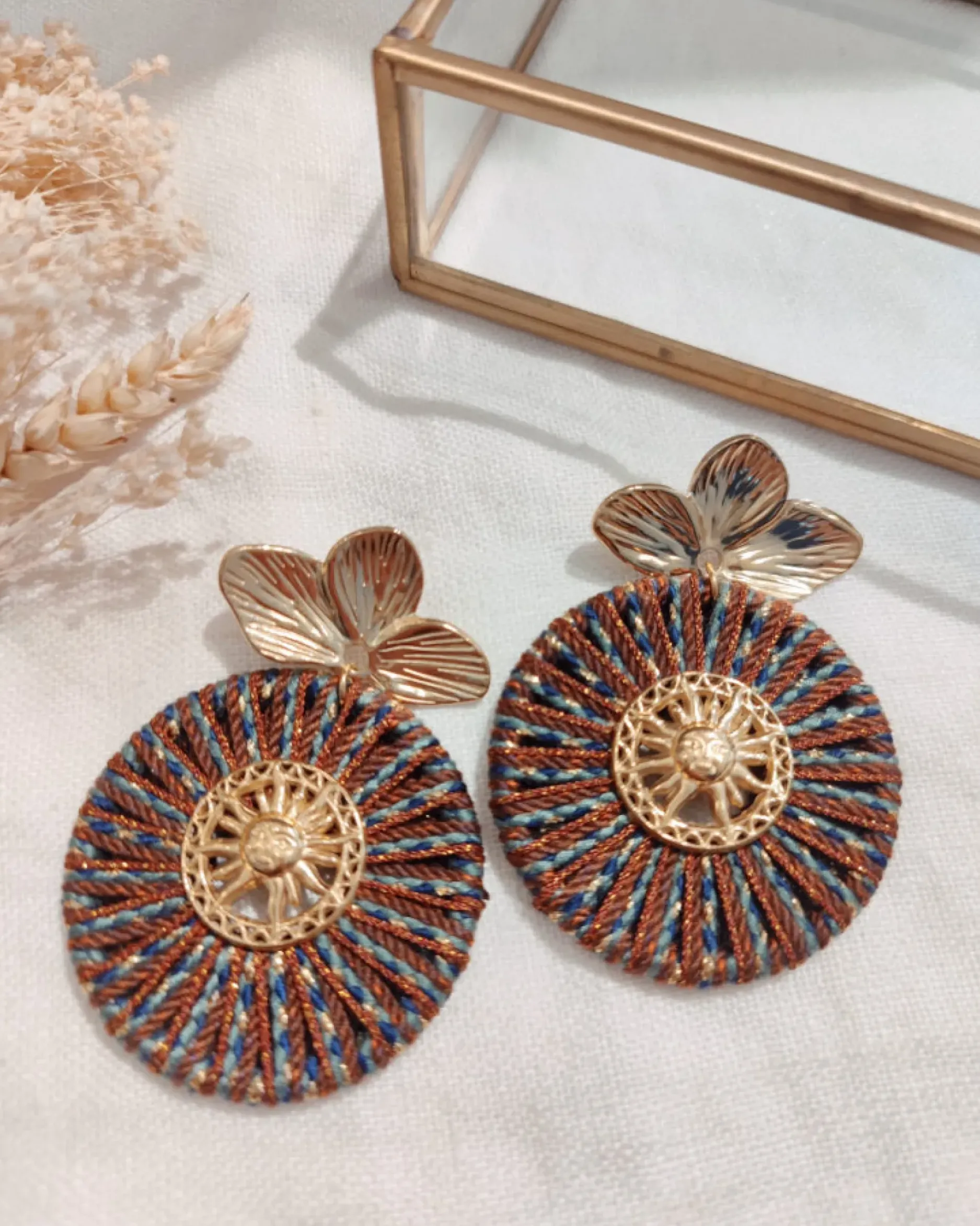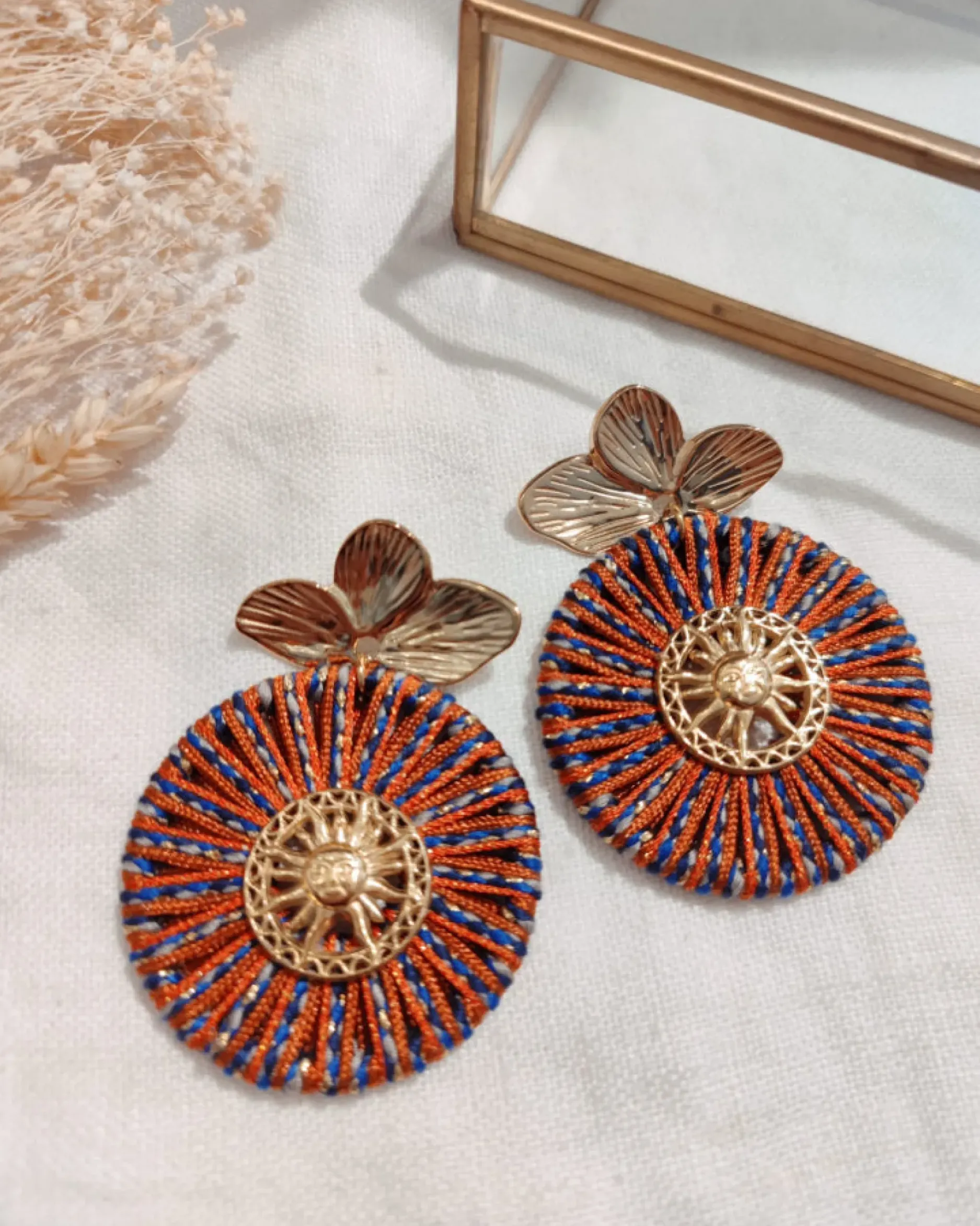 Vibrez avec les beaux bijoux B.O Soleil Tissé ! Boucle d’oreille soleil tissé doré en acier inoxydable pour un look chic et élégant. Apportez une touche de soleil à vos tenues avec ces boucles d’oreilles uniques. Faites tourner les têtes avec ce bijou de qualité supérieure. Commandez dès maintenant et rayonnez !