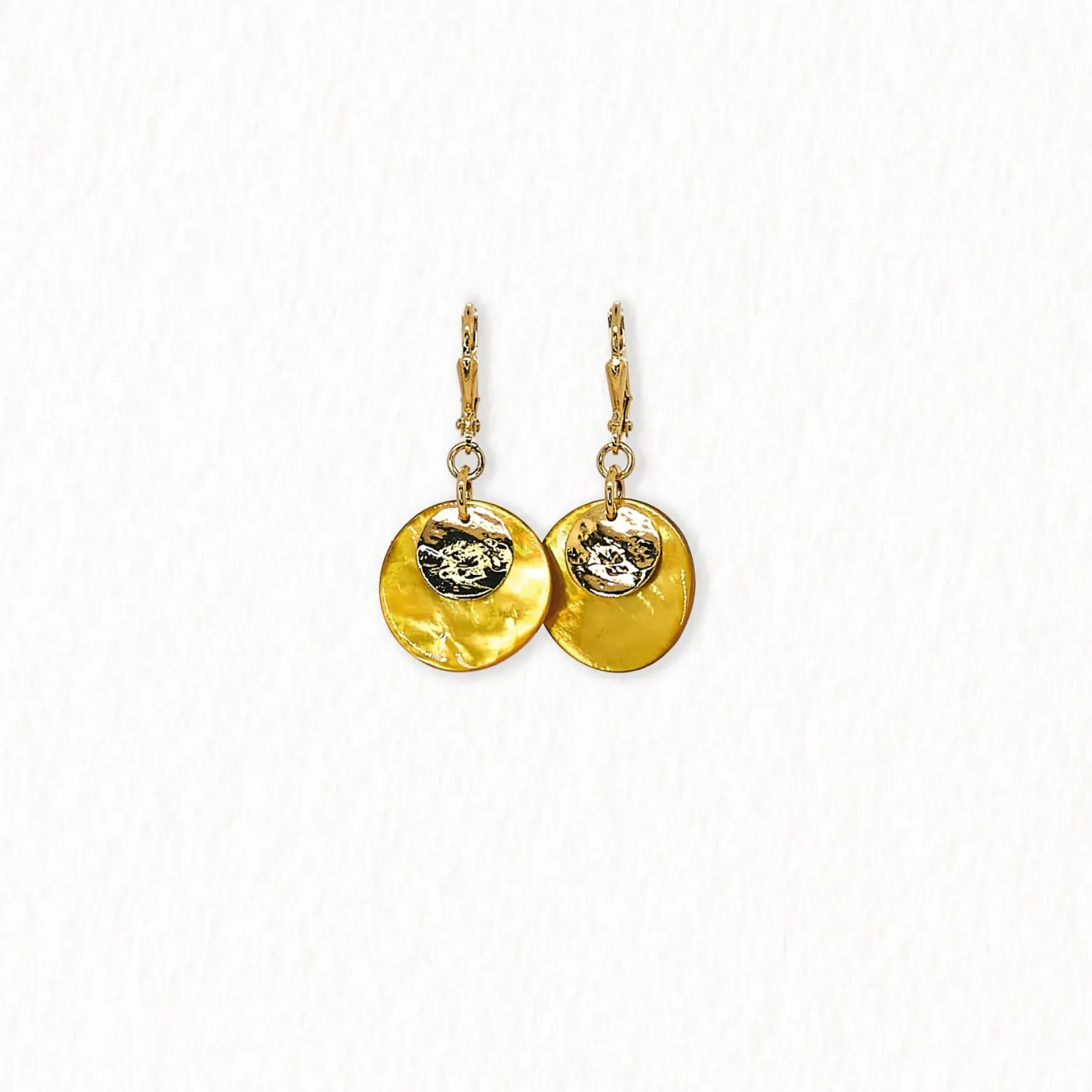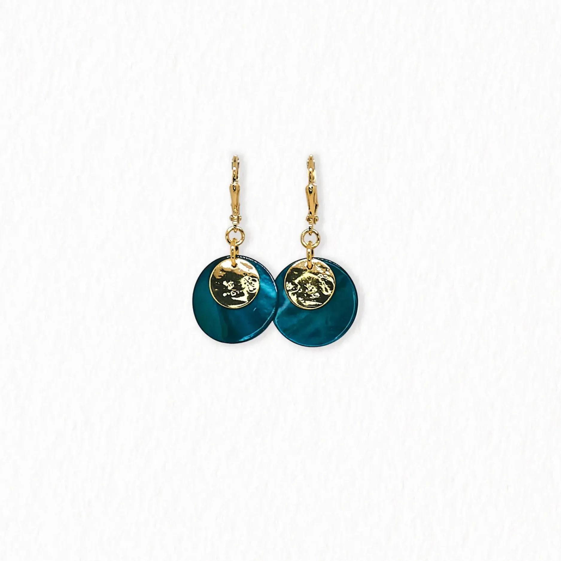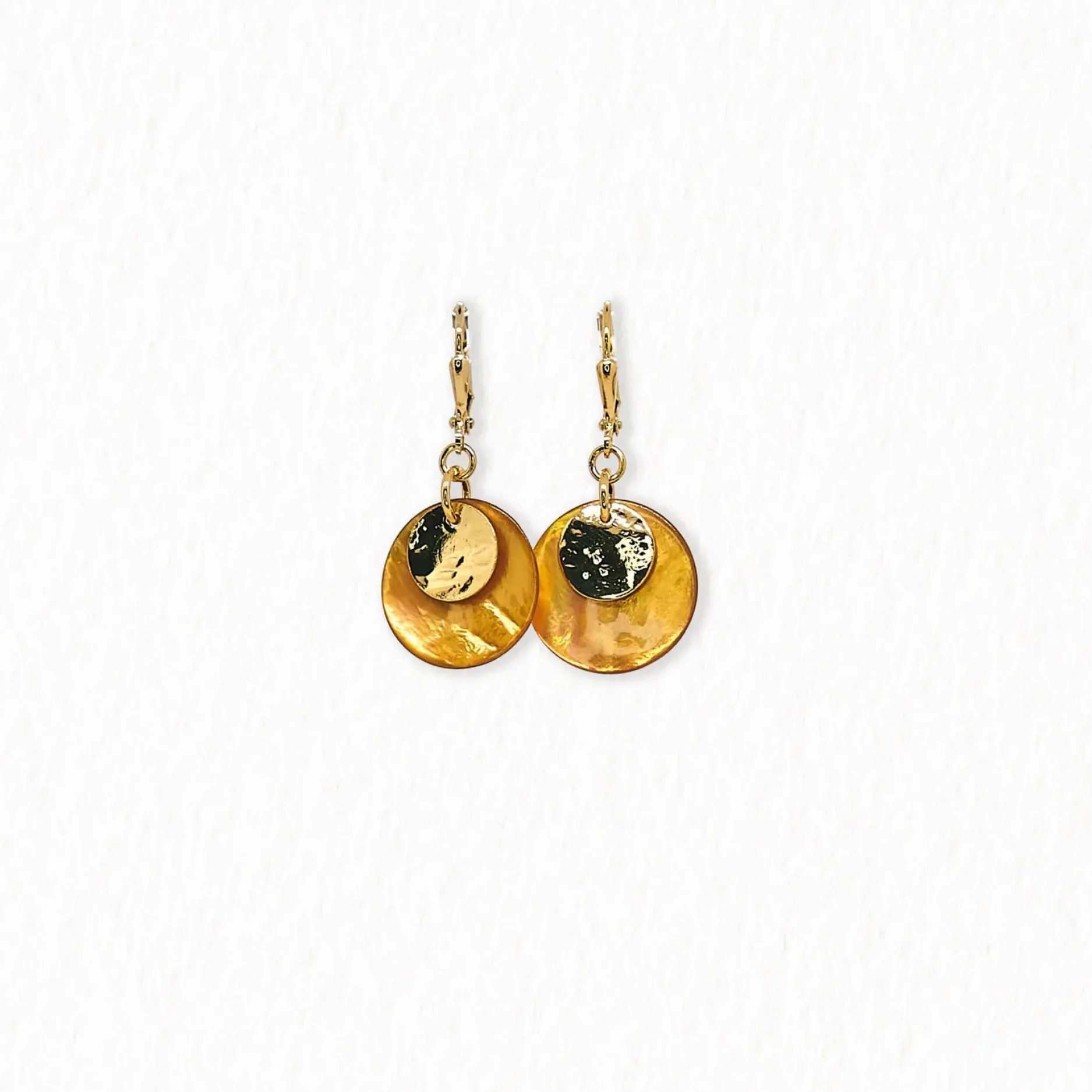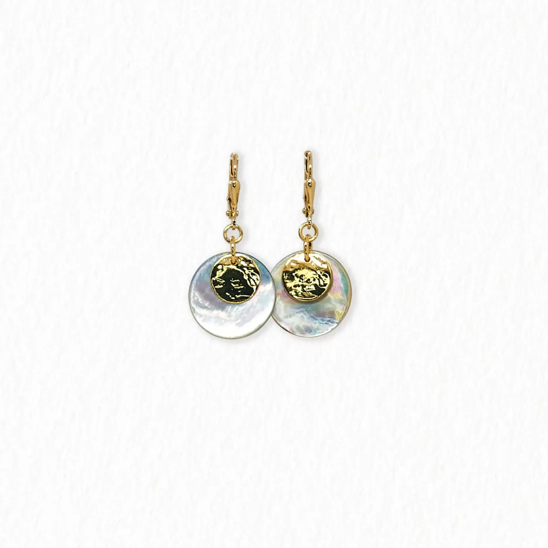 Ces boucles d’oreilles dormeuses en nacre sont essentielles pour toute garde-robe ! Leur design élégant et polyvalent est parfait pour un usage quotidien, tandis que la dorure à l’or fin ou en plaqué argent ajoute une touche de sophistication. Le disque martelé et la nacre de 18 mm apportent une touche de texture et de luxe. Longueur de 5 cm.