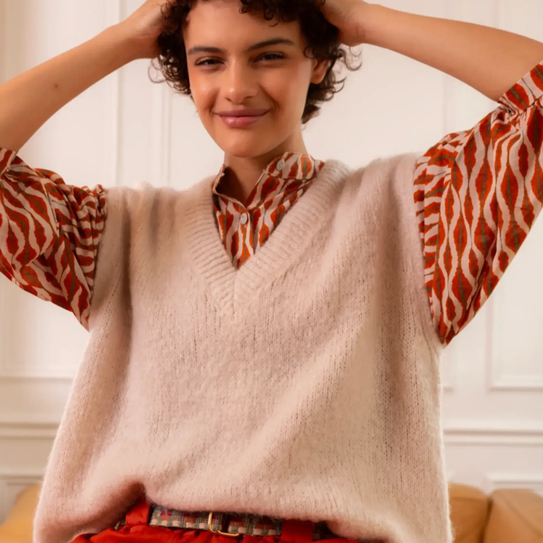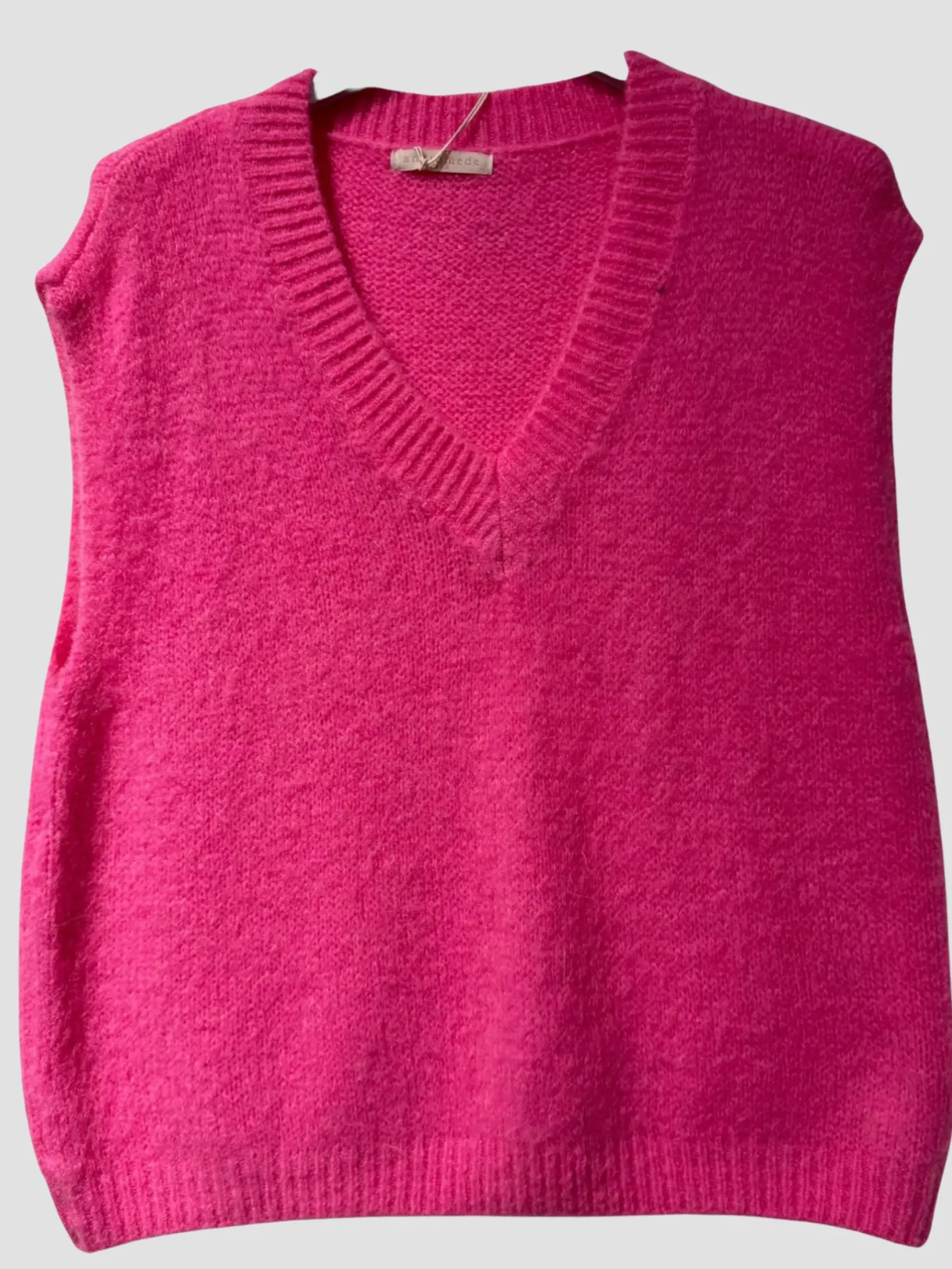 Ce pull sans manches Olga est parfait pour un look décontracté et élégant. Avec sa coupe ample et son encolure en V, il offre un confort optimal tout en étant tendance. Disponible en plusieurs coloris, il est composé à 30% de kid mohair, ce qui le rend doux et chaud. Ajoutez une touche de style à votre garde-robe avec ce pull original et confortable.