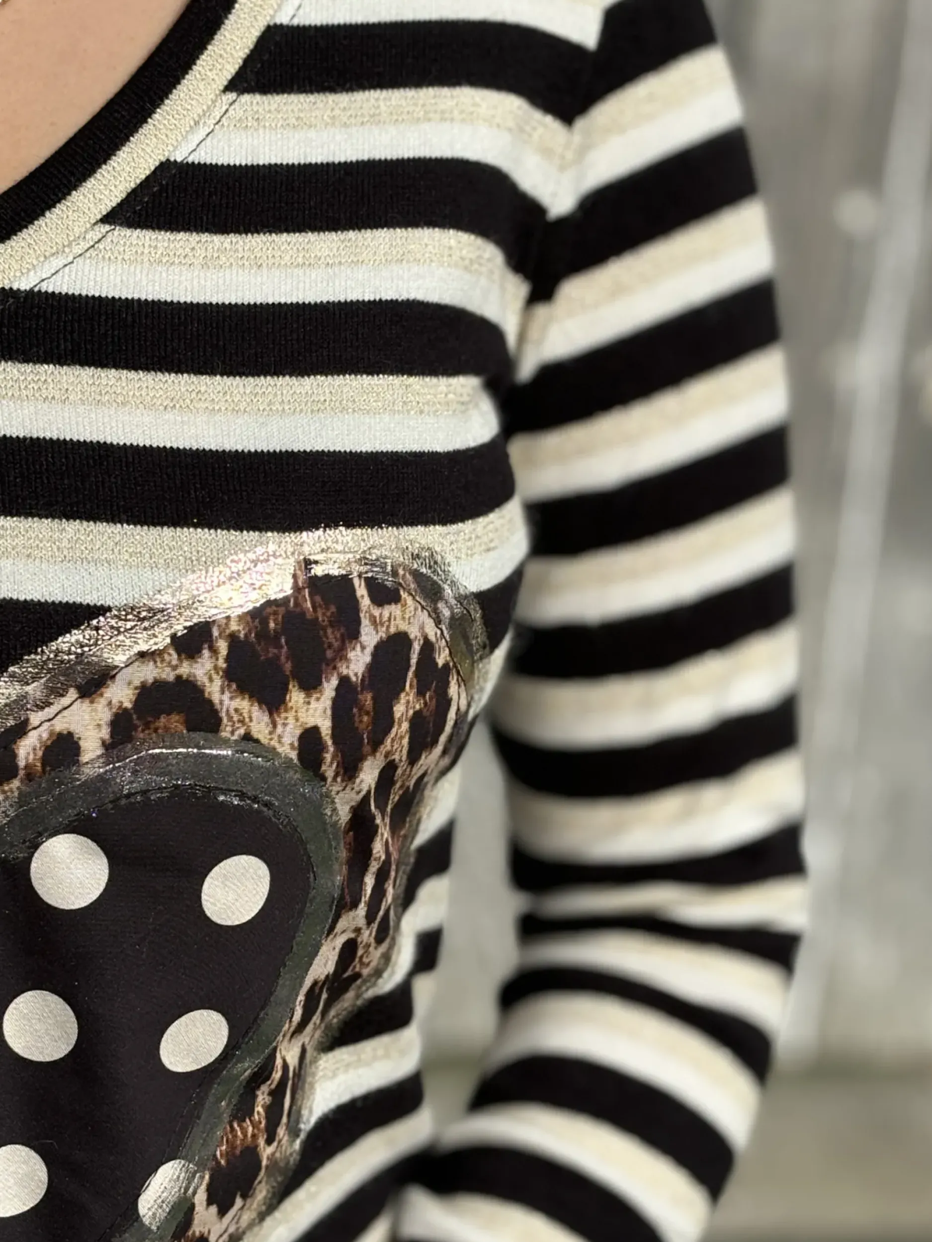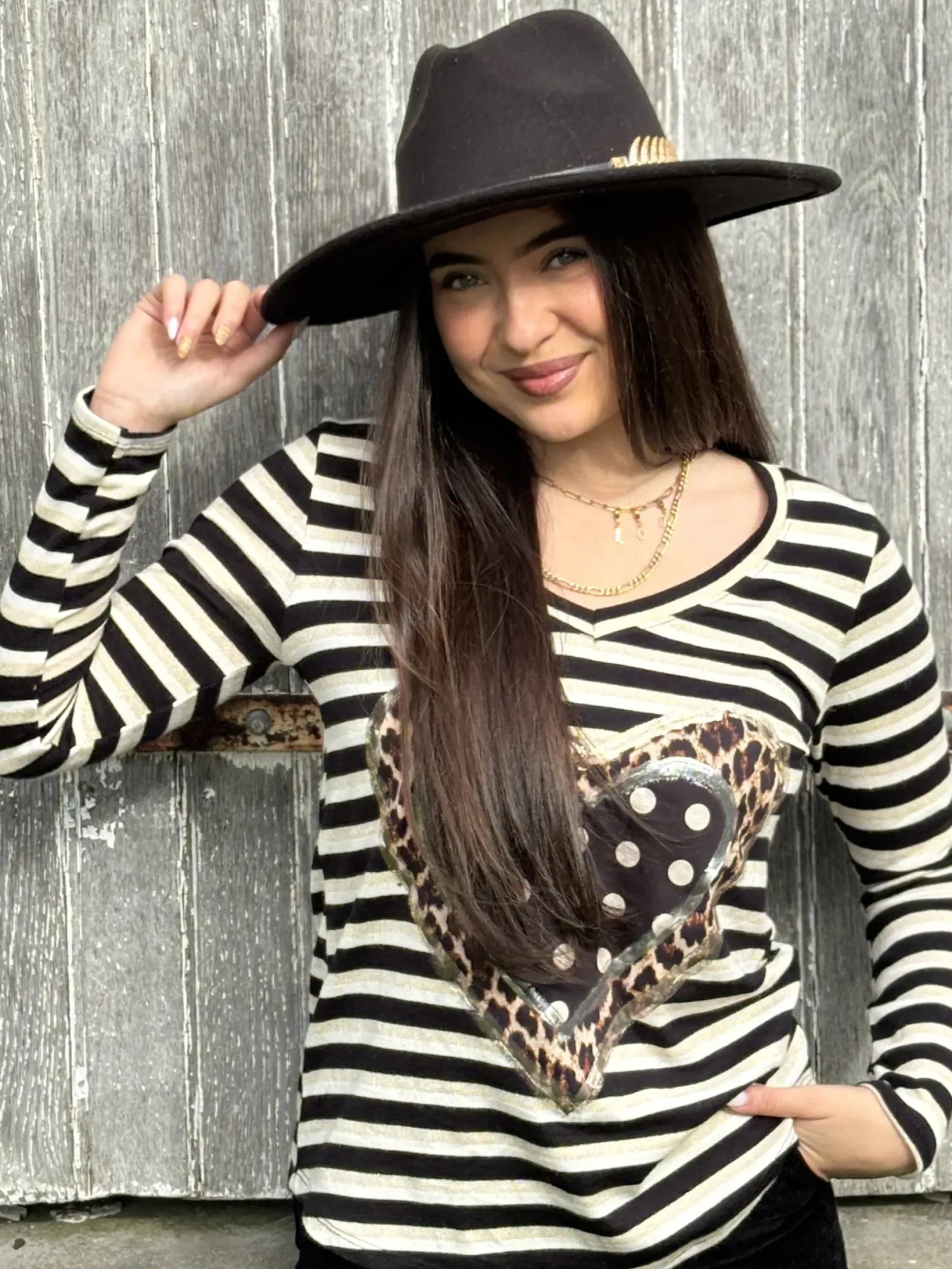 Découvrez notre tee-shirt Petit Pois Coeur ! Avec son encolure en V et son imprimé de pois et rayures, cette chemise cintrée manches longues vous apporte une touche de féminité et de style. Fabriquée à partir de matériaux de haute qualité, elle est confortable tout en étant élégante. Taille unique pour un ajustement parfait !