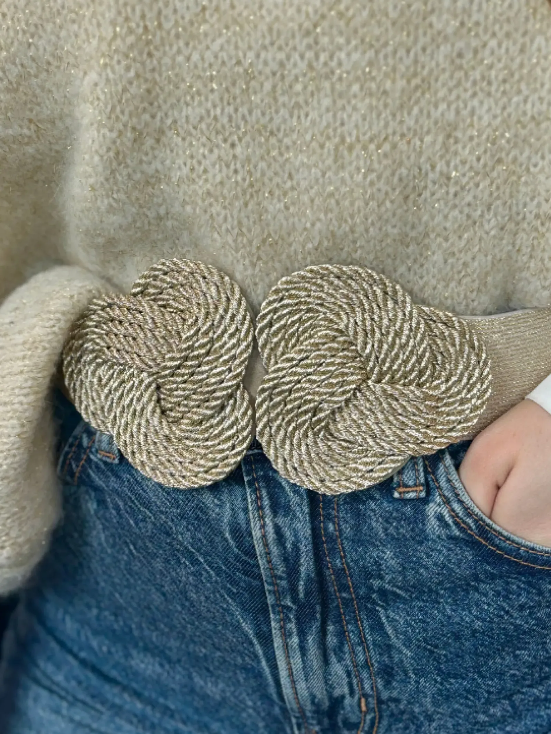 Ceinture élastique avec une élégante boucle en forme de nœud doré. Grâce à son design extensible, elle s’adapte parfaitement à votre silhouette tout en apportant une touche raffinée à votre tenue. Idéale pour souligner la taille avec élégance et féminité.