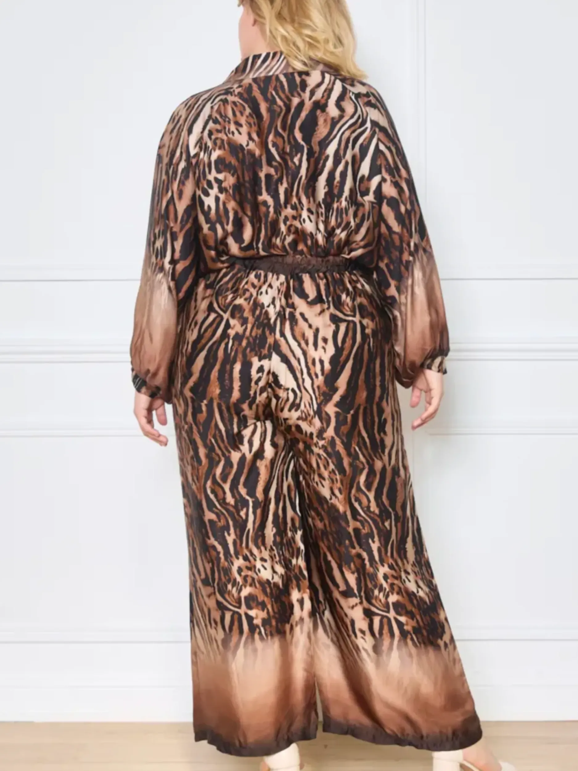 Sublimez votre look avec notre pantalon Tiger. Conçu en viscose douce avec une touche de soie, il offre une sensation satinée et un confort ample. Le motif zébré aux couleurs chaleureuses ajoute une touche sauvage à votre garde-robe, tandis que la taille unique convient aux tailles 44 à 50. Faites ressortir votre côté tigresse avec ce pantalon unique !