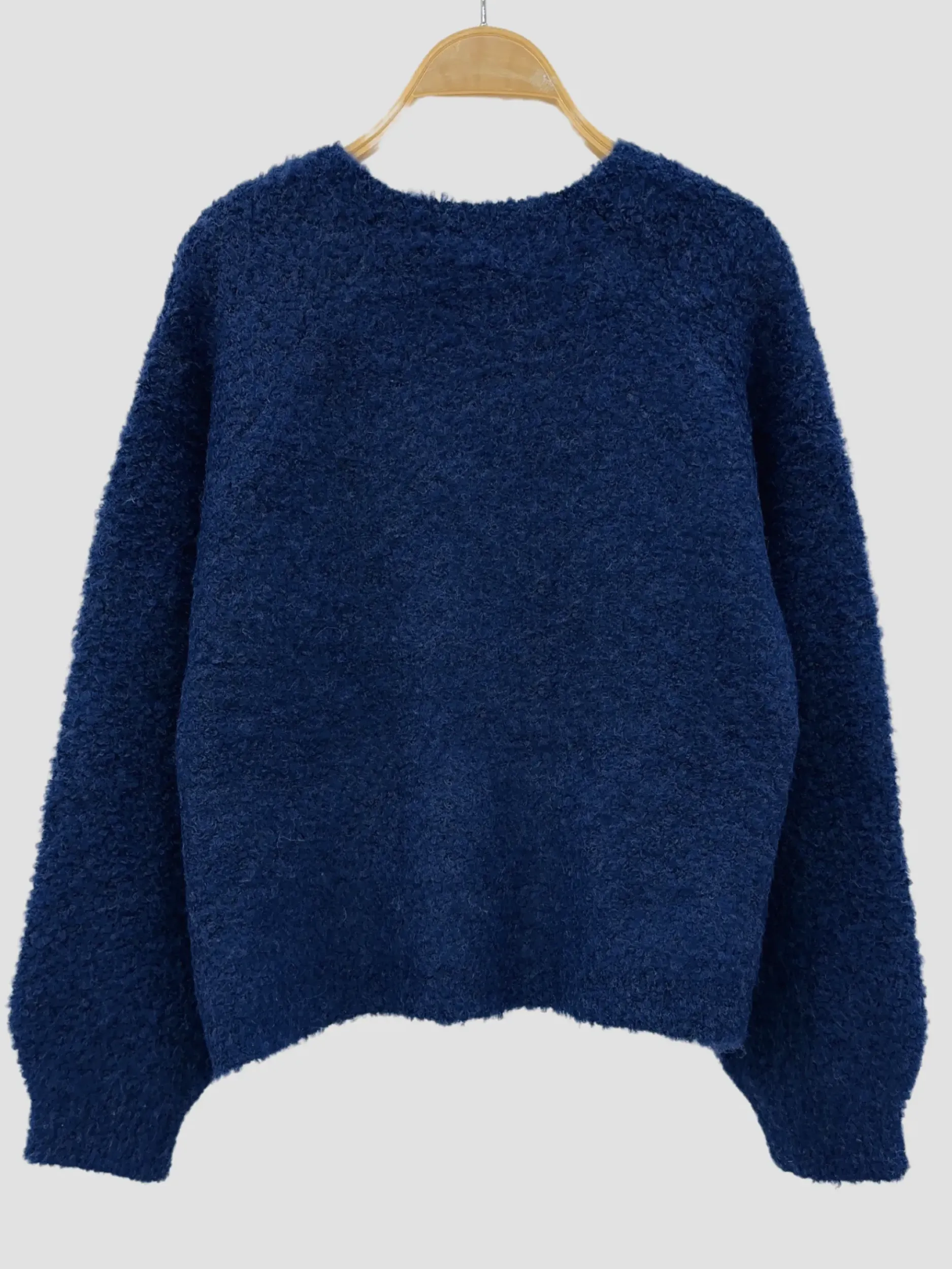 Voici un pull doux et chaud au design élégant et intemporel. Doté de boutons dorés ornant l’épaule, il apporte une touche de raffinement à votre tenue. Sa coupe légèrement ample et ses manches longues offrent confort et style. Composé de matières recyclées et de laine, il allie durabilité et qualité. Disponible en bleu profond et en beige, il s’adapte parfaitement à une garde-robe hivernale. Taille unique, convient du 36 au 42.