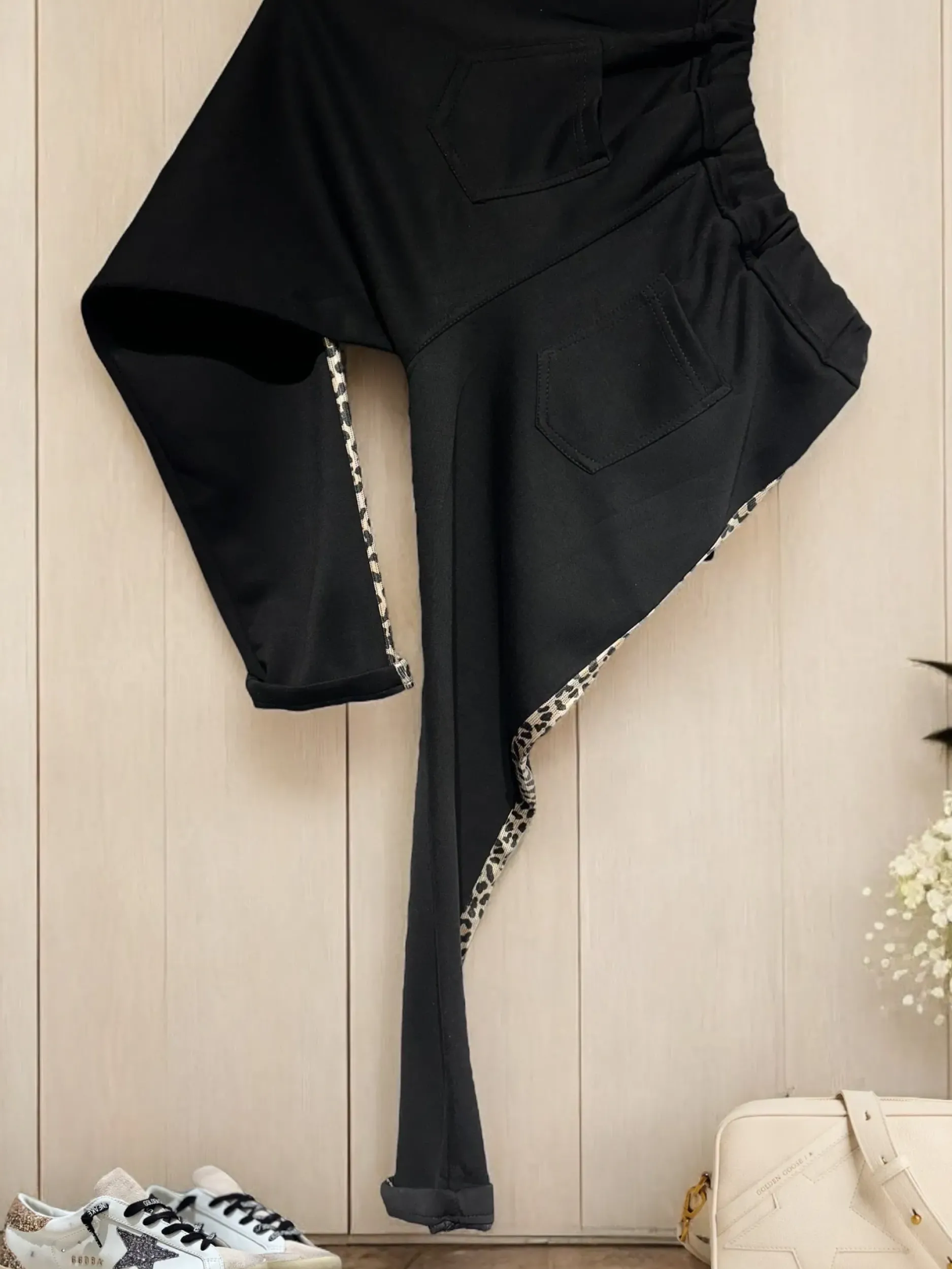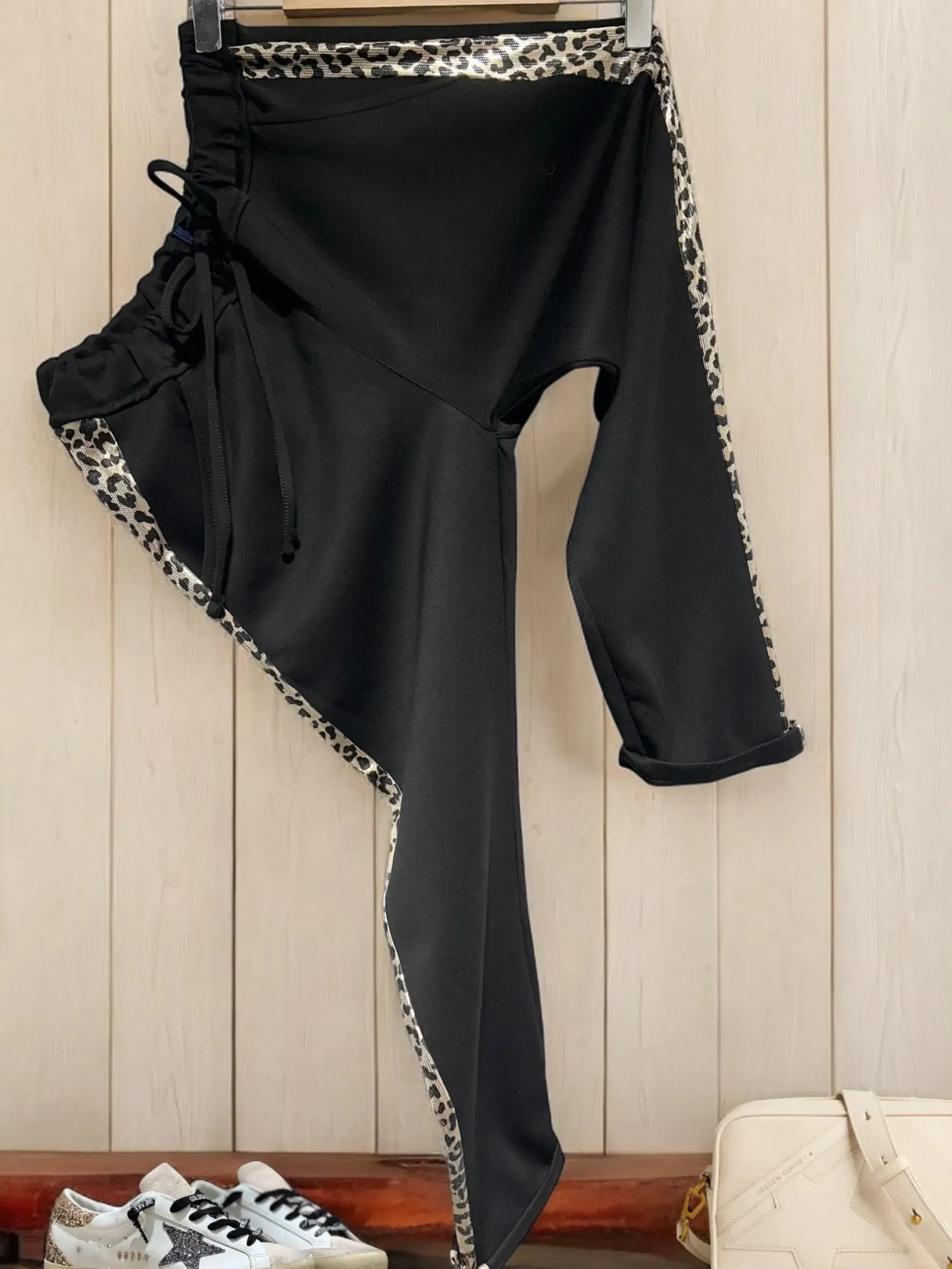 Vivez l’aventure avec style grâce à notre PantaJogg Bande Léo ! Avec sa coupe ample, sa bande léopard et sa taille élastique ajustable, il combine confort et tendance. Disponible en tailles S/M et M/L, fabriqué en 95% viscose et 5% élasthanne. Prêt pour l’aventure ?