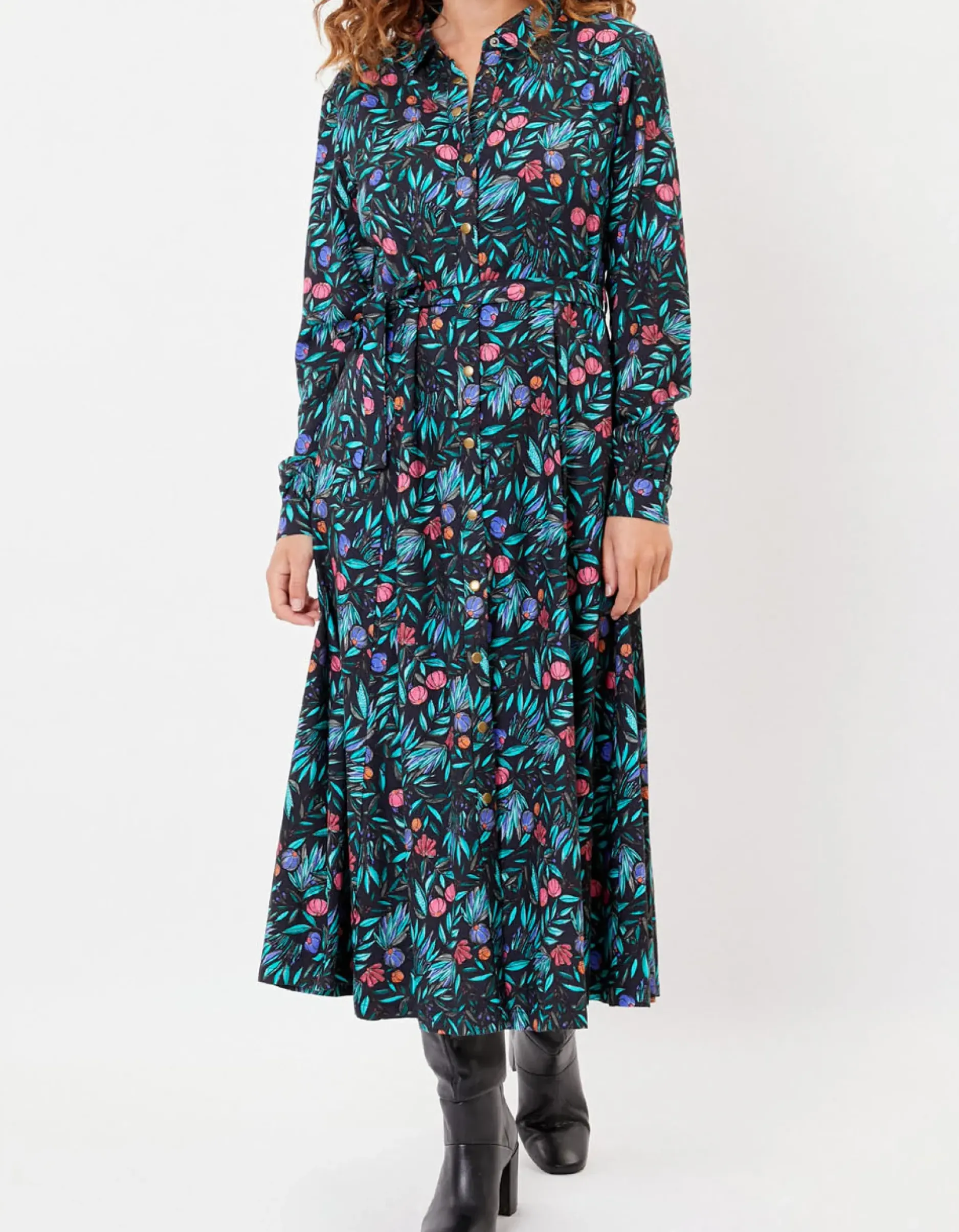 Sublimez votre silhouette avec la robe longue fluide chemise Anna. Son imprimé coloré bleu vous transporte vers une ambiance estivale. Son col chemise et sa fermeture bouton pression vous apportent un look élégant et confortable. Fabriquée à 100% en viscose, cette robe est légère et agréable à porter. Offrez-vous une touche de fraîcheur avec la robe Anna.