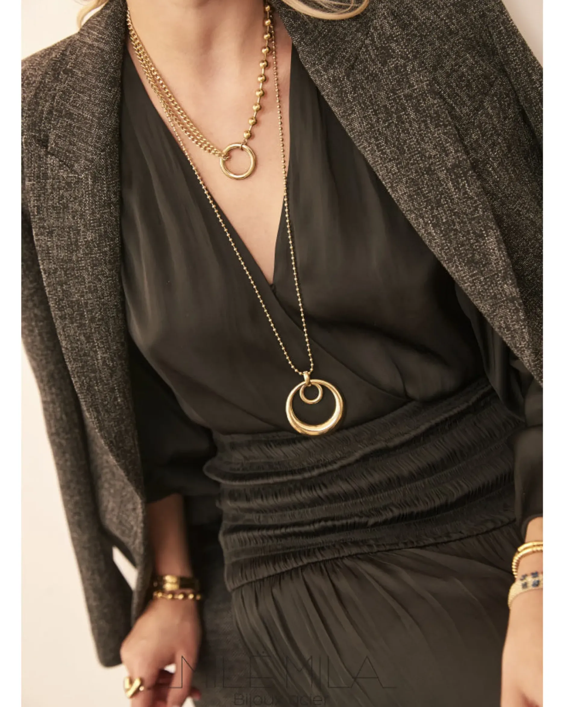 Ajoutez une touche de glamour à votre look avec notre sautoir anneau doré en acier inoxydable. Fabriqué avec des matériaux de qualité, ce collier résistant et élégant apporte une touche de raffinement à toutes vos tenues. Parfait pour une soirée spéciale ou pour une touche de sophistication au quotidien.