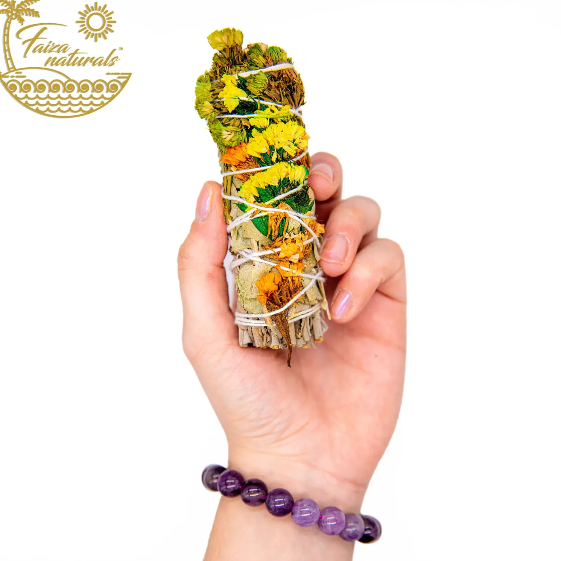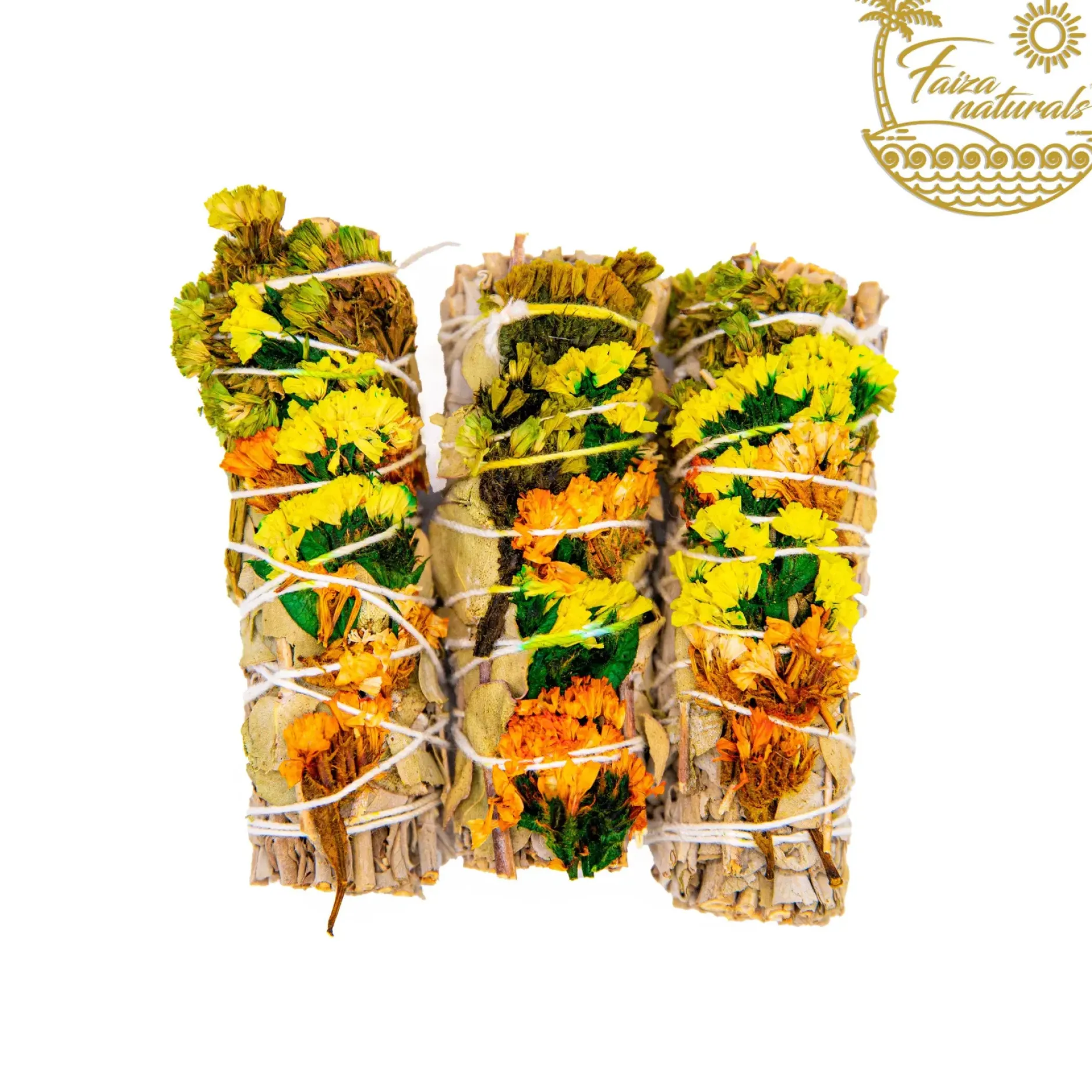 Un bouquet de 4 pouces de fleurs sinuata vertes, jaunes et oranges printanières associées à des feuilles d’eucalyptus évoque la vraie beauté et le nouveau début de la saison printanière. Notre sauge blanche fraîche et biologique de la ferme est à la fois antimicrobienne et antibactérienne. La sauge blanche élimine également les impuretés spirituelles et les agents pathogènes pour favoriser la guérison et la sagesse.Jetez un œil à tous nos autres bâtonnets à maculer frais de la ferme !