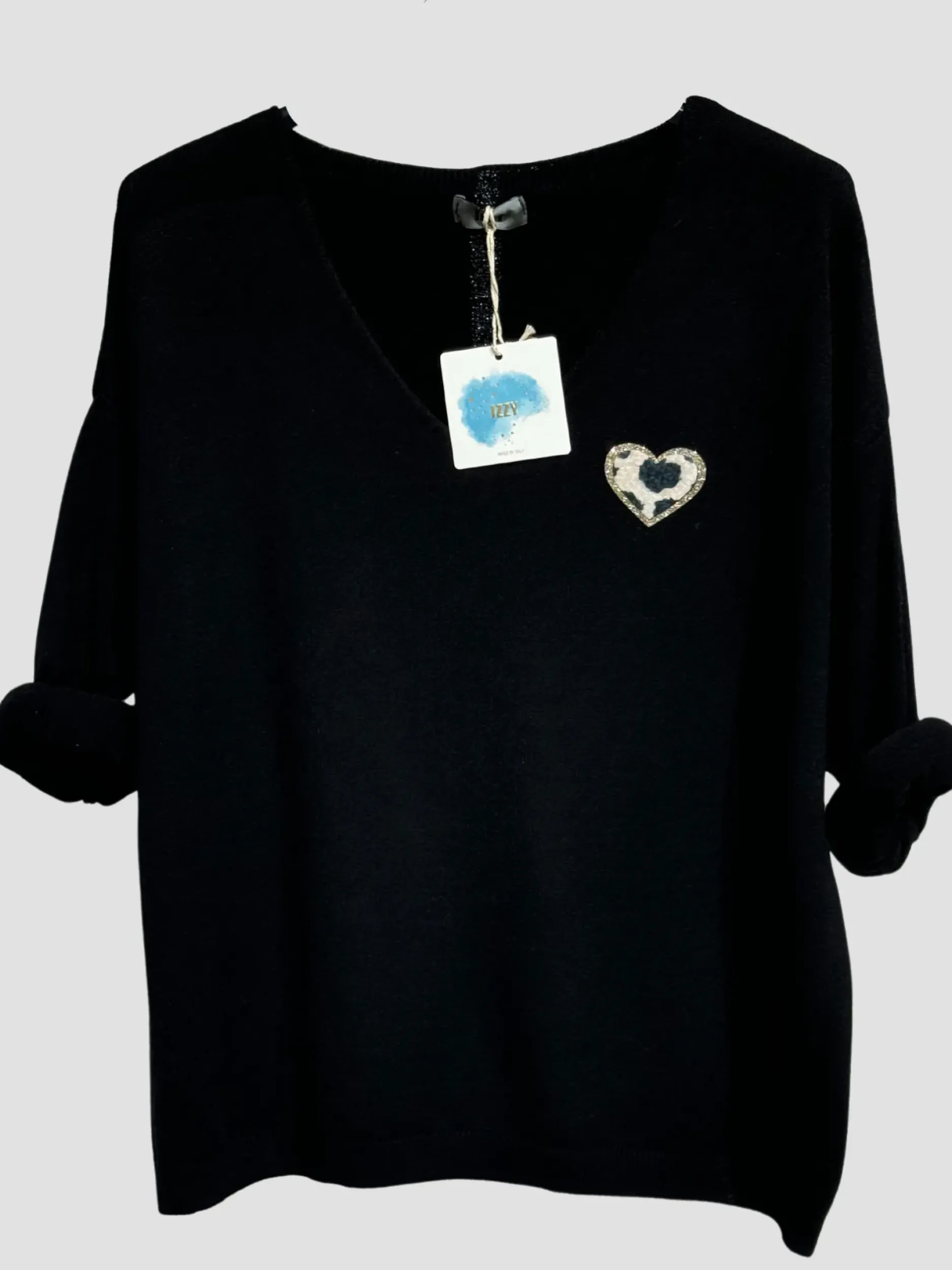 Ce haut élégant à manches longues en col V mettra en valeur votre silhouette grâce à son petit cœur brodé. Taille unique allant du 36 au 44, il convient à toutes les femmes. Fabriqué en 50% viscose, 28% polyester et 22% polyamide, il offre un confort et une qualité remarquables. Disponible en noir et beige.