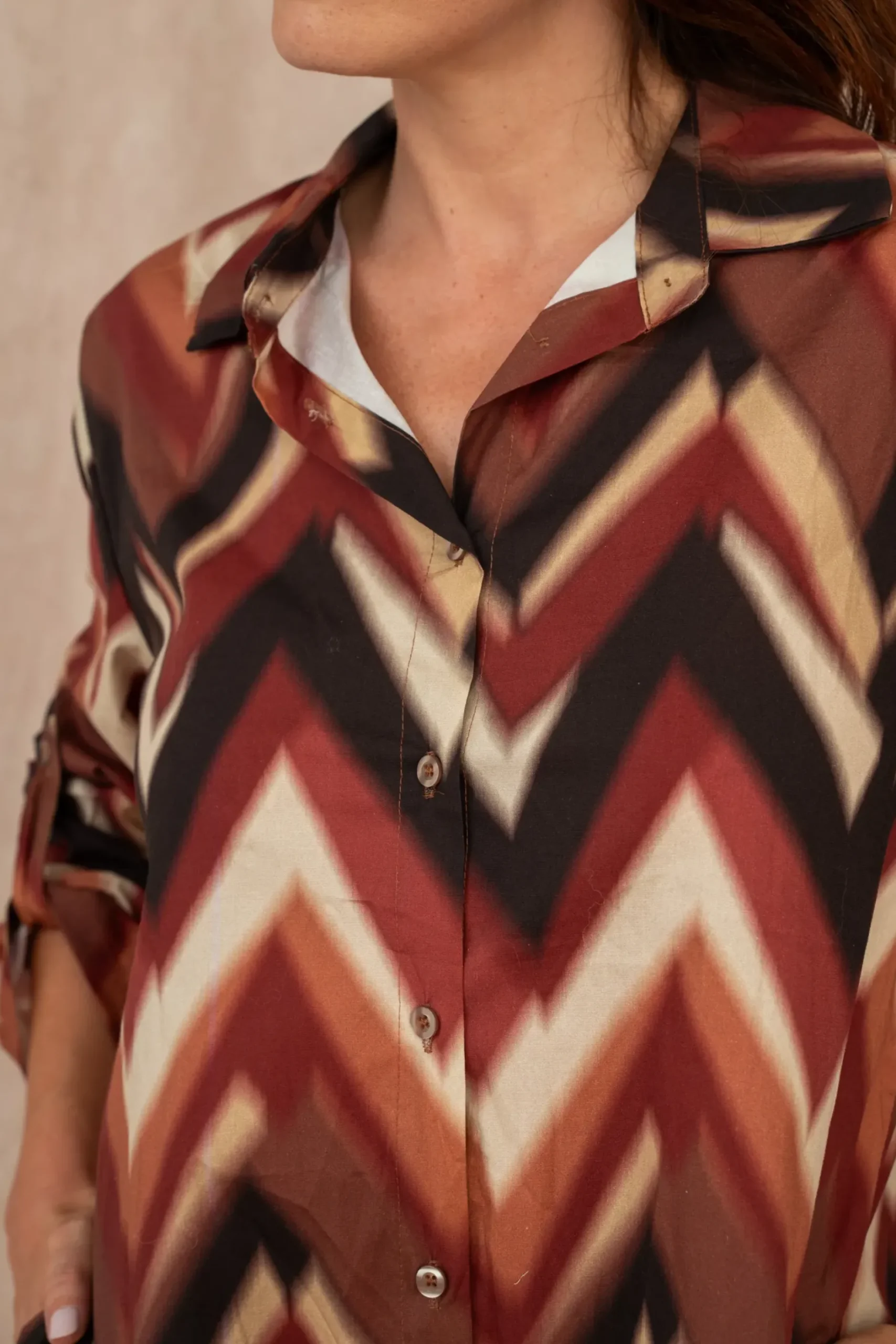Découvrez notre robe chemise fluide et légère en coton pour un look tendance et confortable. Avec son col chemise et ses manches longues, elle convient à toutes les tailles, du 3§ au 42. L’imprimé rouille apporte une touche d’originalité à votre tenue. 100% coton pour une sensation naturelle et agréable sur la peau. Commandez dès maintenant !