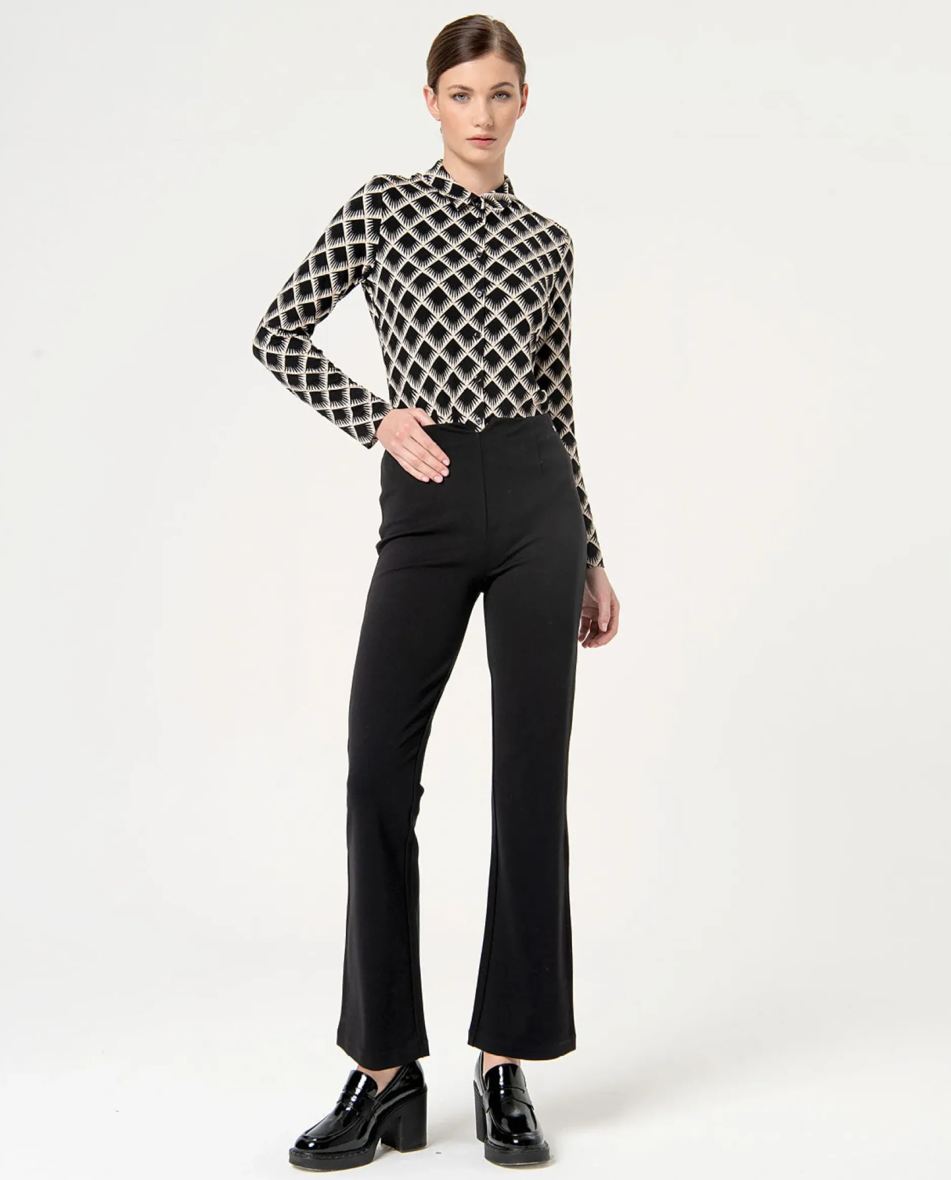 Le Pantalon Nera est le parfait allié pour un look élégant et confortable. Avec sa coupe évasée et sa matière en tricot extensible, il offre un ajustement parfait sans fermeture. Disponible en tailles XS à XXL, il convient à toutes les silhouettes. Ajoutez une touche de sophistication à votre garde-robe !