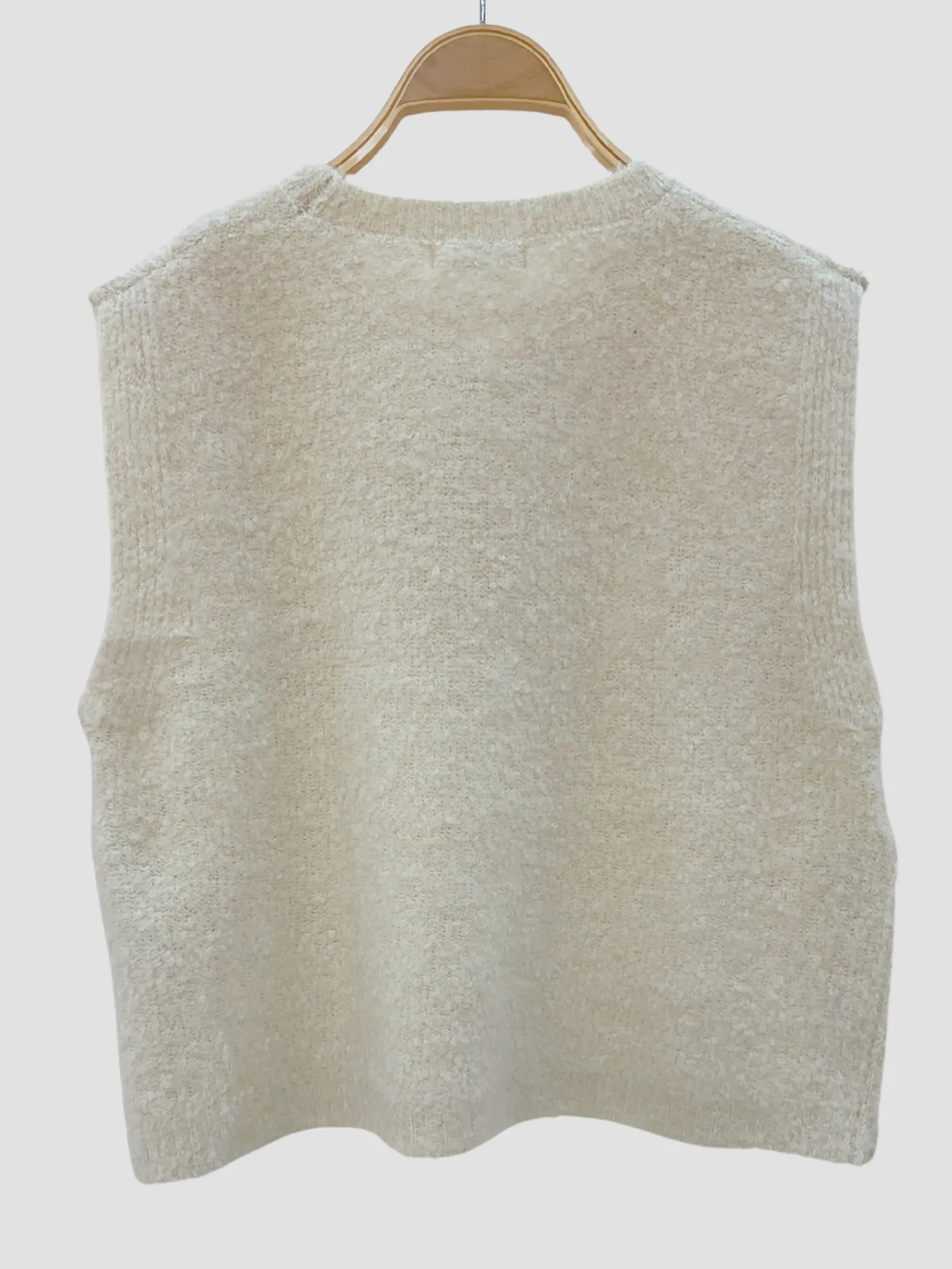 Craquez pour ce pull sans manches au style épuré et intemporel. Confectionné dans une matière douce et texturée, il est agrémenté de boutons dorés sur le côté, apportant une touche élégante et féminine. Disponible en taille unique (36 à 42), il offre une coupe confortable et s’adapte à toutes les morphologies. Existe en écru et en gris chiné, parfait pour un look cocooning chic.