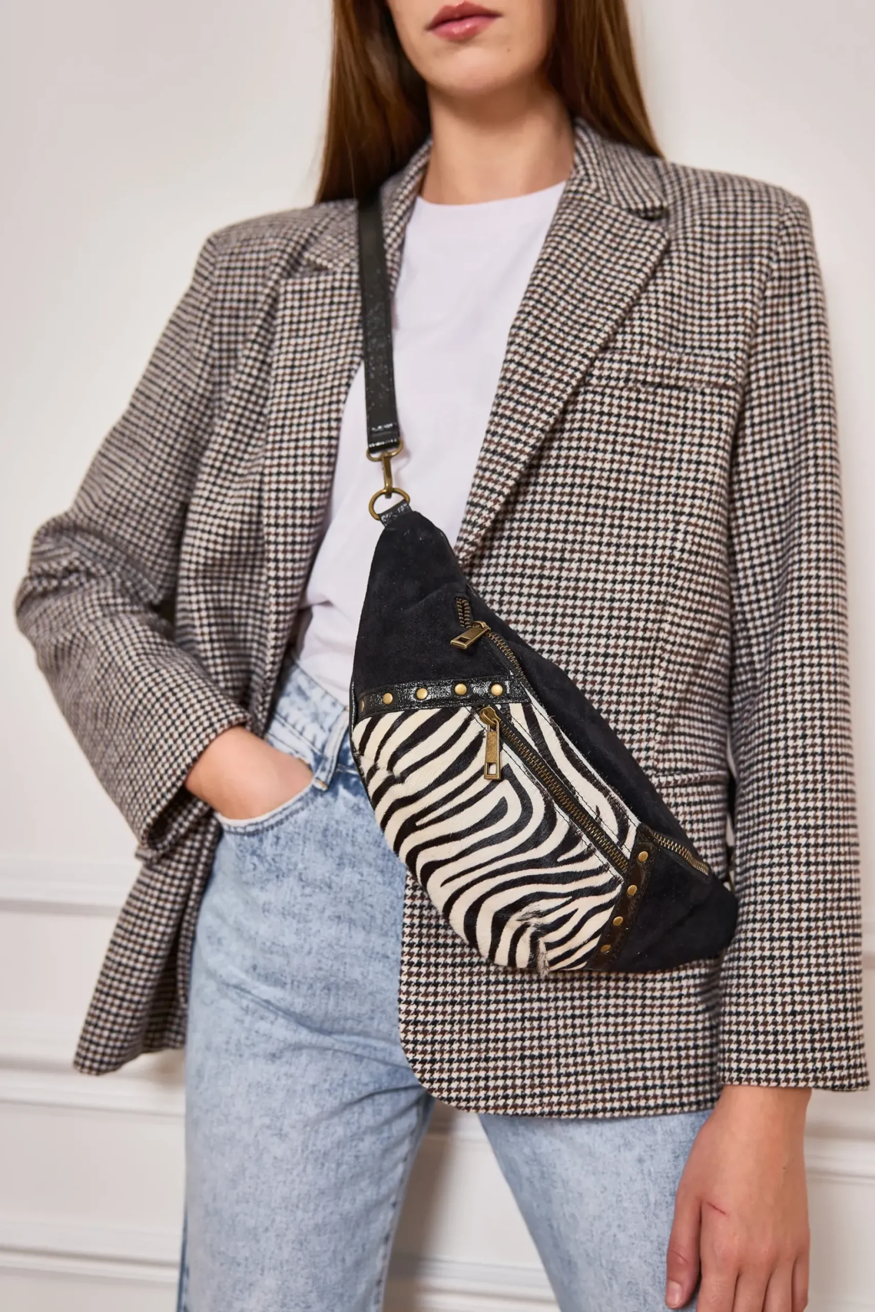 Cette banane en cuir allie audace et fonctionnalité, parfaite pour celles qui aiment un style affirmé et pratique. Avec ses empiècements imprimés animal, elle apporte une touche sauvage et sophistiquée à toutes les tenues. Le design inclut deux fermetures éclair pratiques pour accéder facilement à vos essentiels. Disponible en plusieurs coloris et motifs d’imprimés animaux, elle s’adapte à toutes les envies et personnalités.