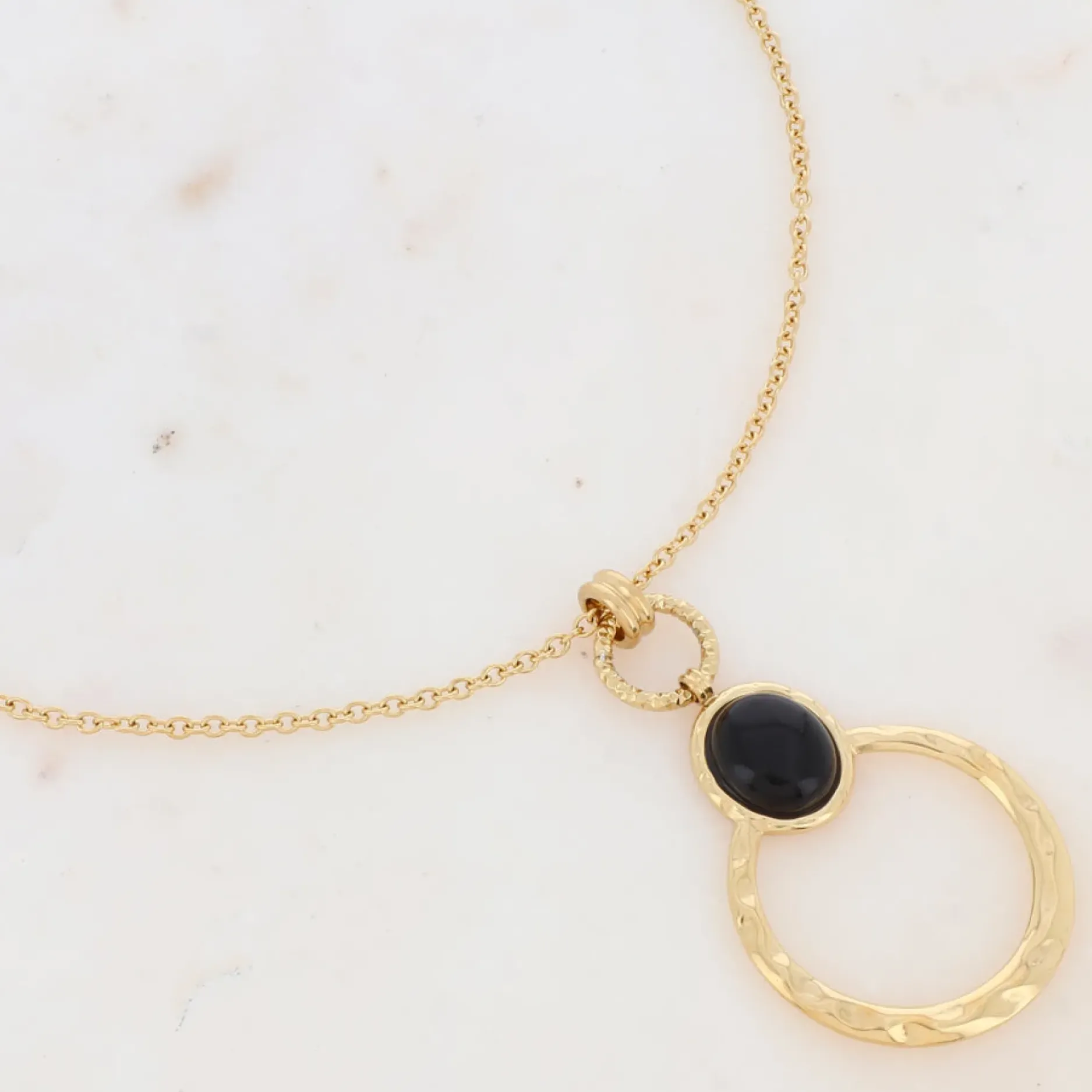 Ajoutez une touche naturelle et élégante à votre look avec notre sautoir en acier inoxydable. L’anneau texturé met en valeur une pierre naturelle, tandis que le fermoir mousqueton et la chaînette de réglage assurent un ajustement parfait. Hypoallergénique et résistant à l’eau, ce collier vous accompagnera dans toutes vos aventures.