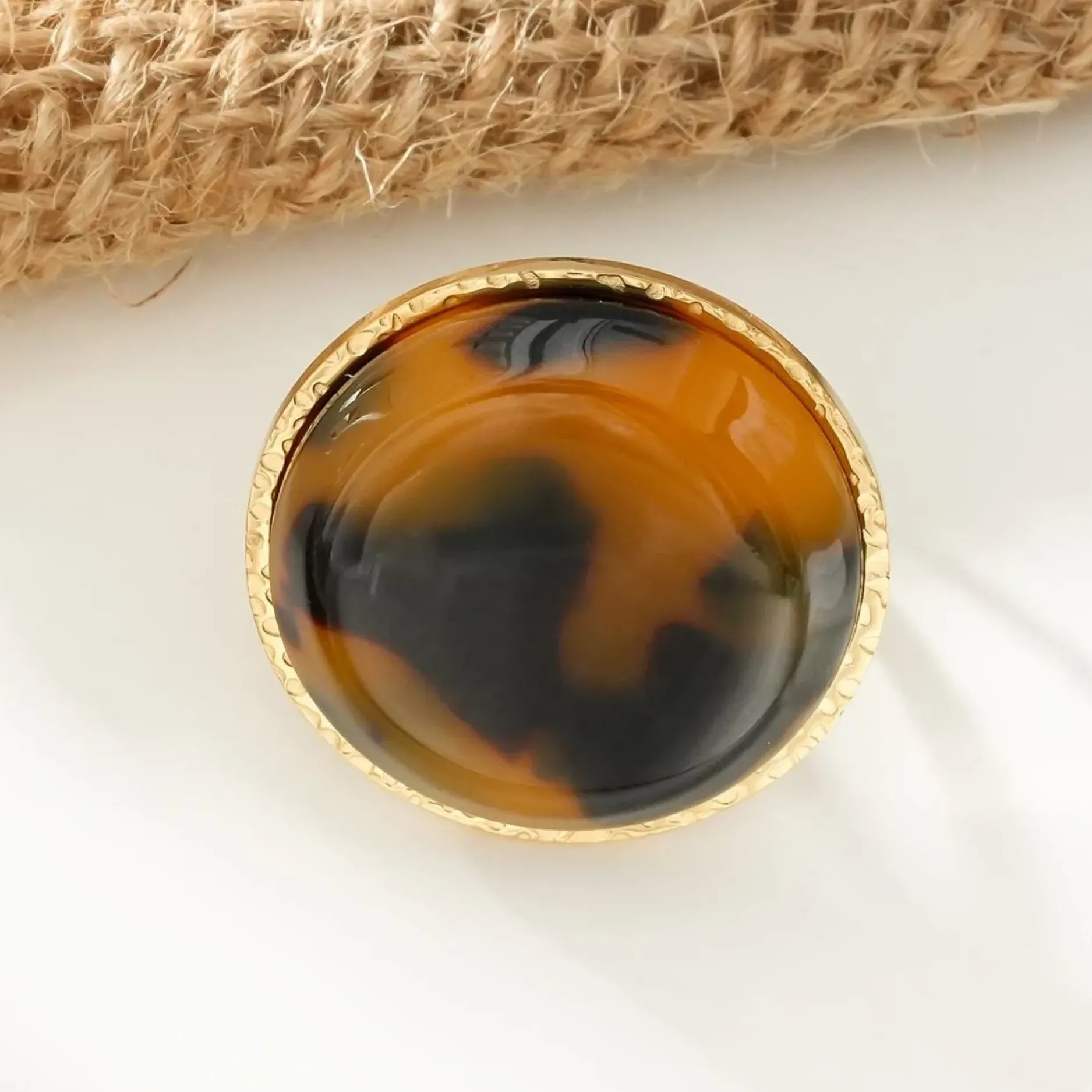 Offrez-vous un look unique avec notre bague résine marbré marron, au design rond et original. Fabriquée en résine de qualité, cette bague ajoutera une touche de style à toutes vos tenues. Apportez de l’élégance à votre quotidien avec cette bague tendance.
