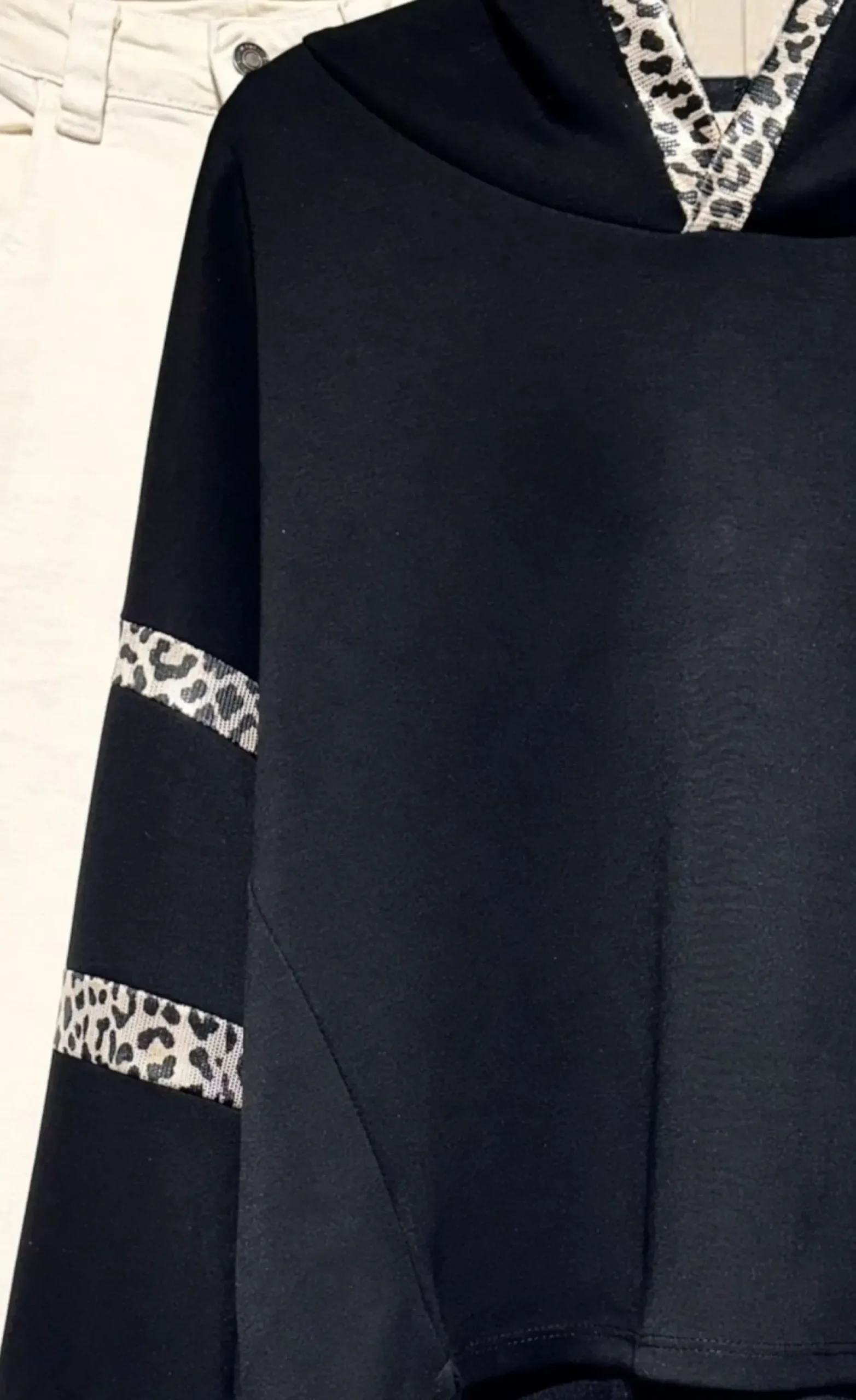 Adoptez un look sauvage et tendance avec notre Sweat Bande Léo ! Ce sweat ample à capuche offre un confort optimal grâce à sa matière viscose-élastane et ses manches longues. Les bords imprimés léopard ajoutent une touche de style unique, tandis que les bandes sur les manches en font un vêtement polyvalent pour toutes les tailles (du 36 au 46). Disponible en noir et en écru.
