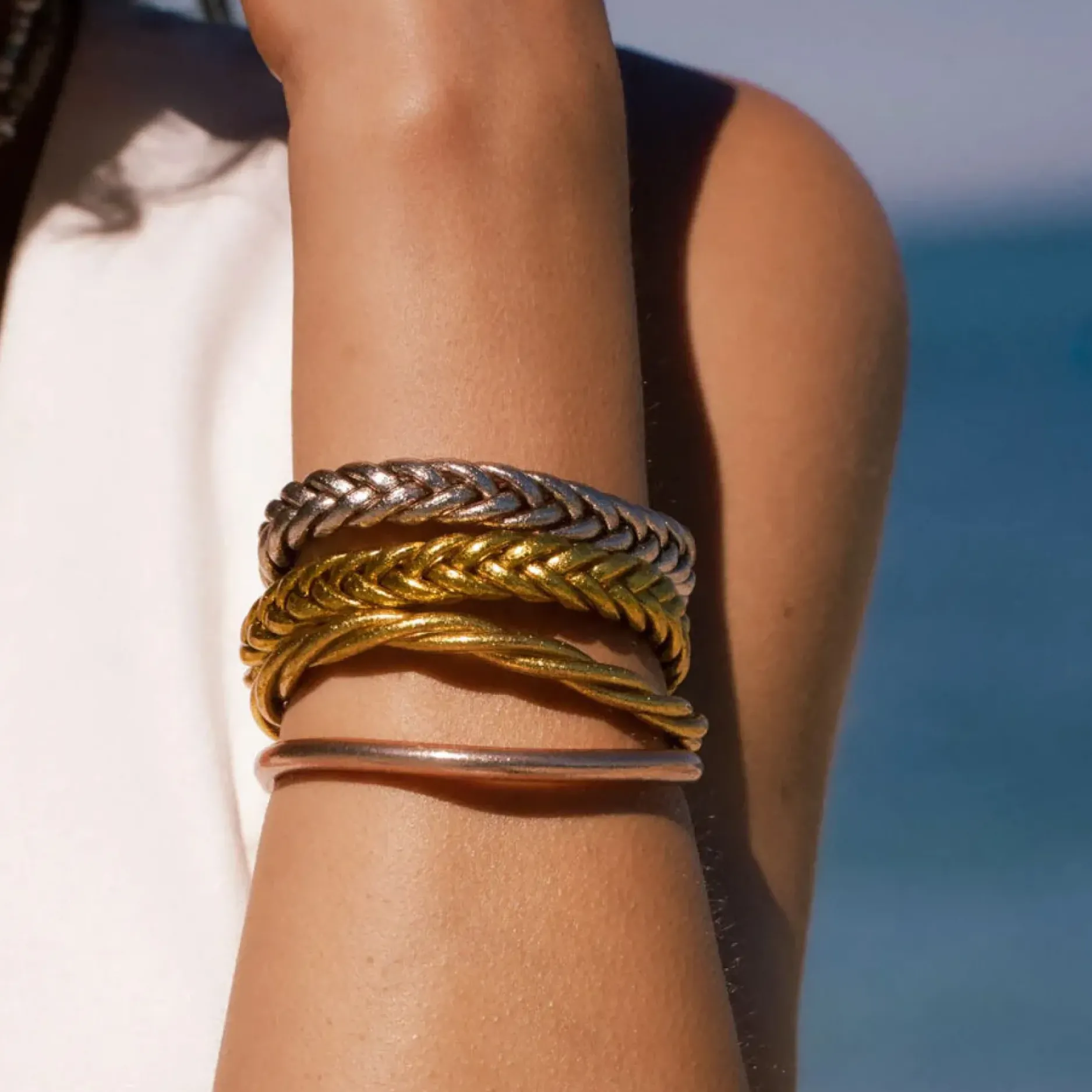 Ce bracelet jonc souple torsadé est rempli de feuilles dorées décoratives, apportant une touche de lumière et de sérénité. Avec une taille de 6.2 cm, il convient à tous les poignets. Parfait pour ajouter une touche bohème et zen à votre tenue. Avec ce bijou, chaque jour sera un jour « bouddhiste » !