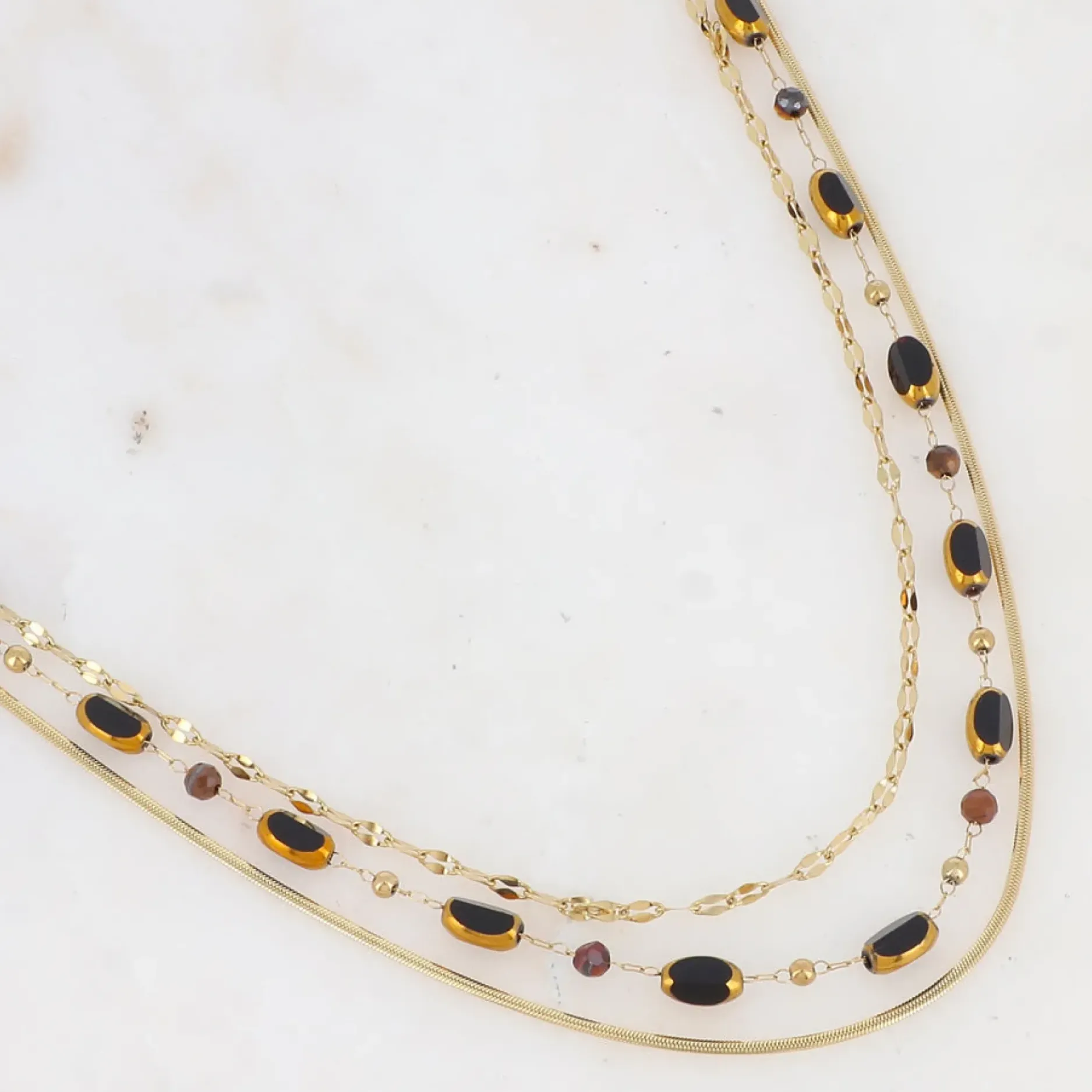 Offrez-vous une touche de naturel avec ce collier triple rangs en acier inoxydable, composé de perles en pierres naturelles et pâtes de verre. Résistant à l’eau et hypoallergénique, il ne noircit pas et s’ajuste parfaitement à votre cou grâce à sa chaînette réglable. Ajoutez une touche d’élégance à votre look !