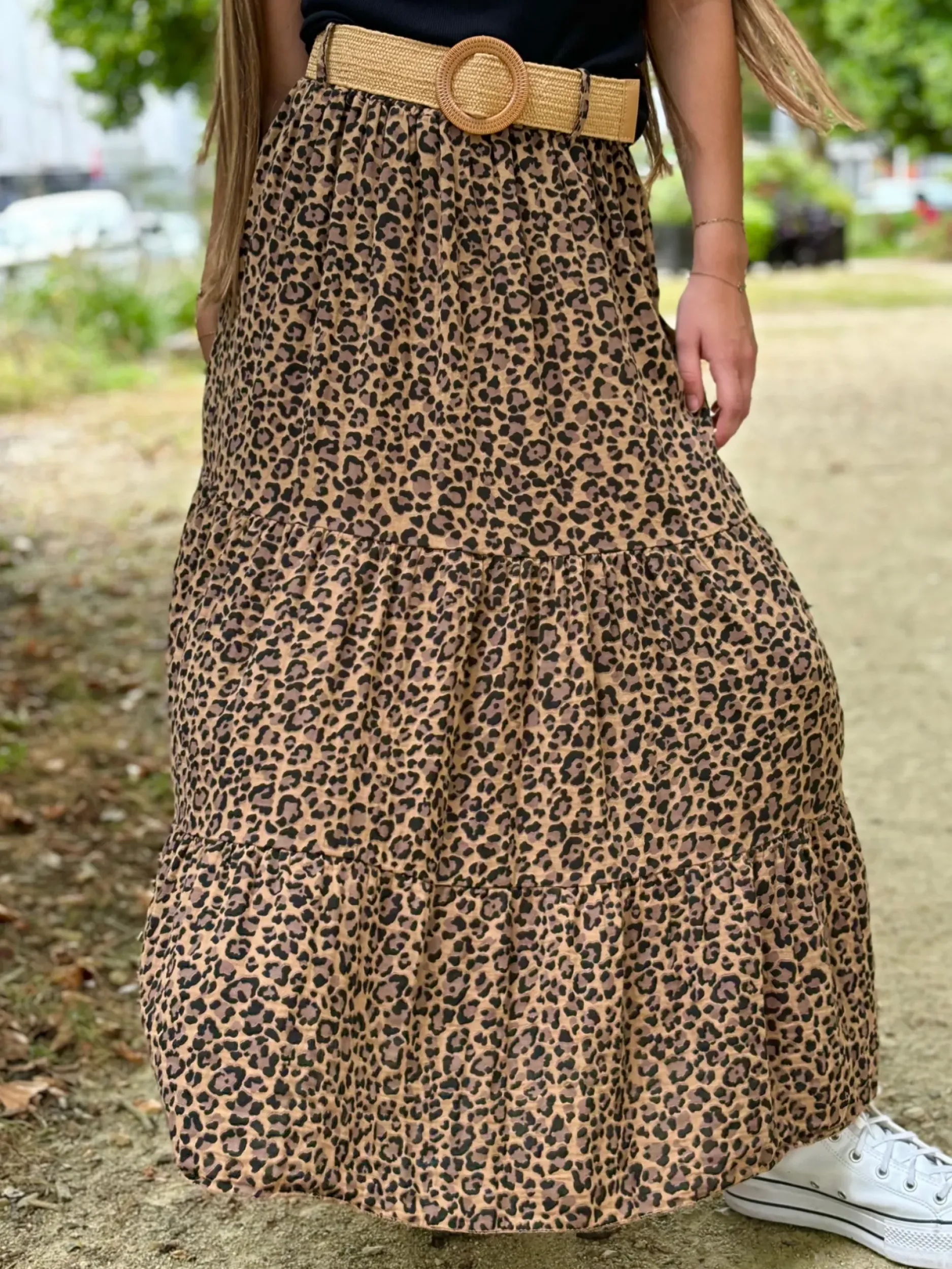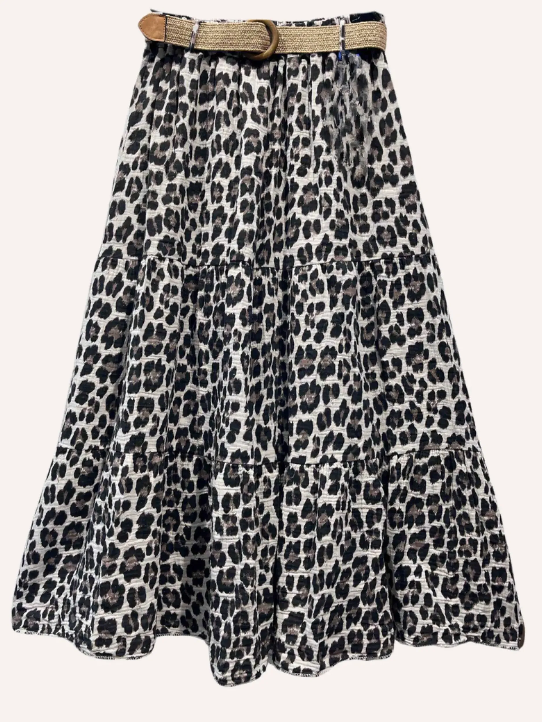 Optez pour un look sauvage avec la jupe Léo en léopard camel ou beige ! Confectionnée en 100% coton, cette jupe longue taille unique du 36 au 44 est agrémentée d’une ceinture pour une coupe parfaite. Affirmez votre style avec cette pièce unique et confortable.