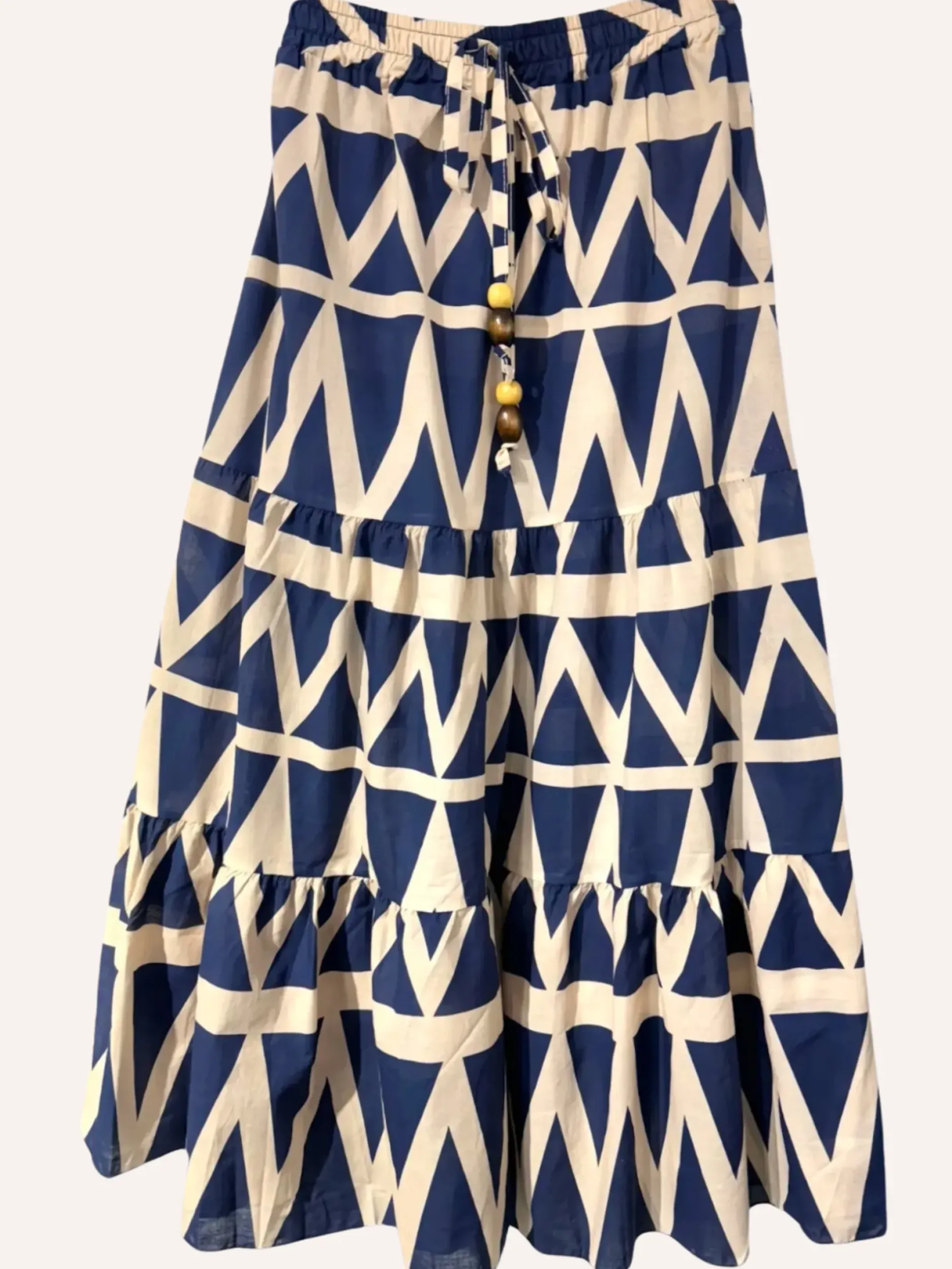 Découvrez notre jupe Uma, une pièce indispensable pour toutes les femmes ! Cette jupe longue évasée est confectionnée en 100% coton et offre un confort optimal. Avec ses motifs géométriques, disponibles en kaki ou marine, elle s’adapte à toutes les occasions. Taille unique du 36 au 44. Mettez en valeur votre silhouette avec style !