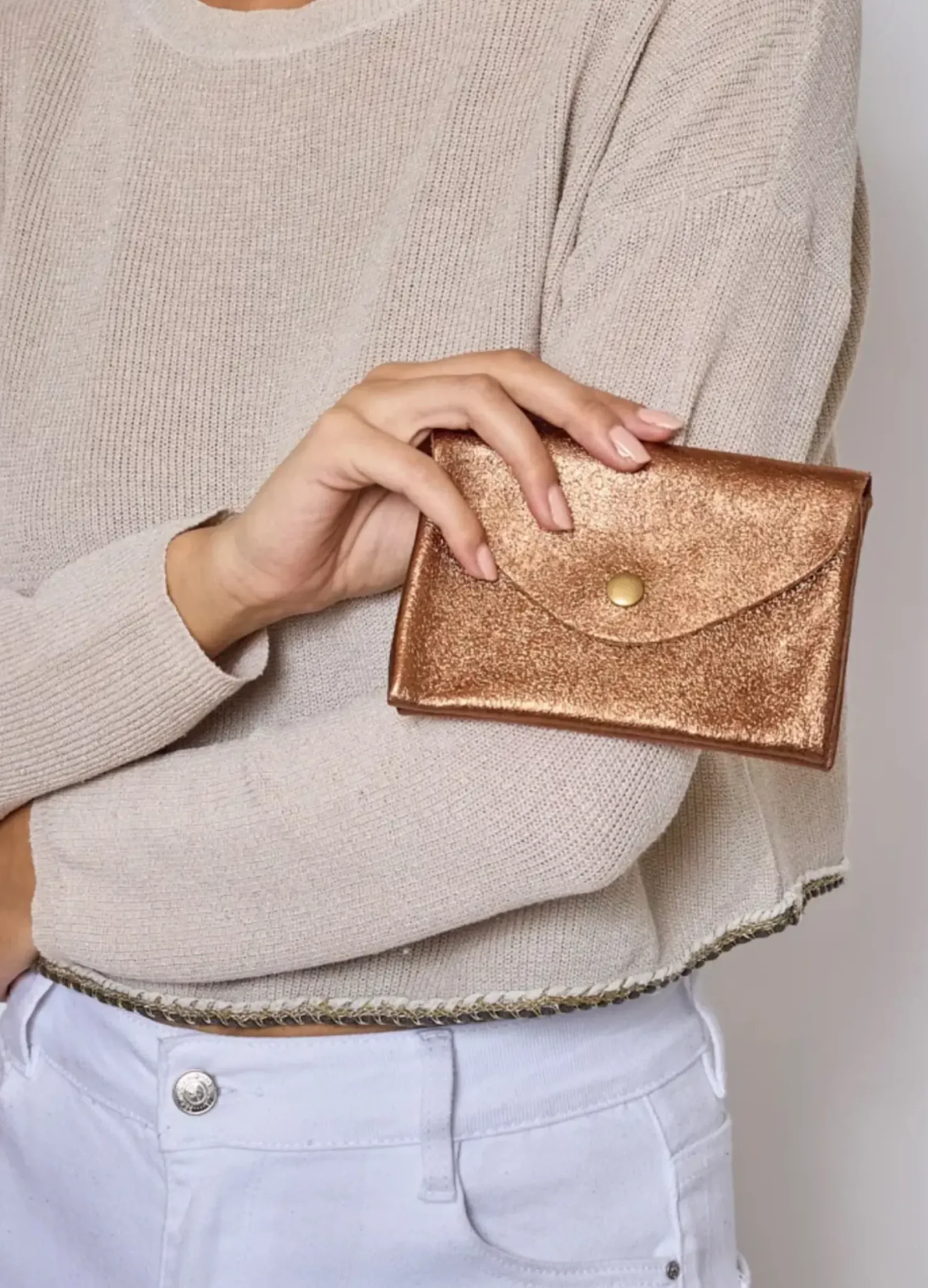 Craquez pour la Pochette Marla! Elle rendra vos tenues audacieuses, stylées et uniques. Vous serez à la pointe de la mode grâce à ses paillettes, son bouton de pression et ses différents coloris. Vous pouvez compter sur sa matière 100% cuir vachette et ses dimensions (9,5x15x1) pour vous accompagner partout! Une pièce indispensable pour être à la hauteur des défis de la vie !