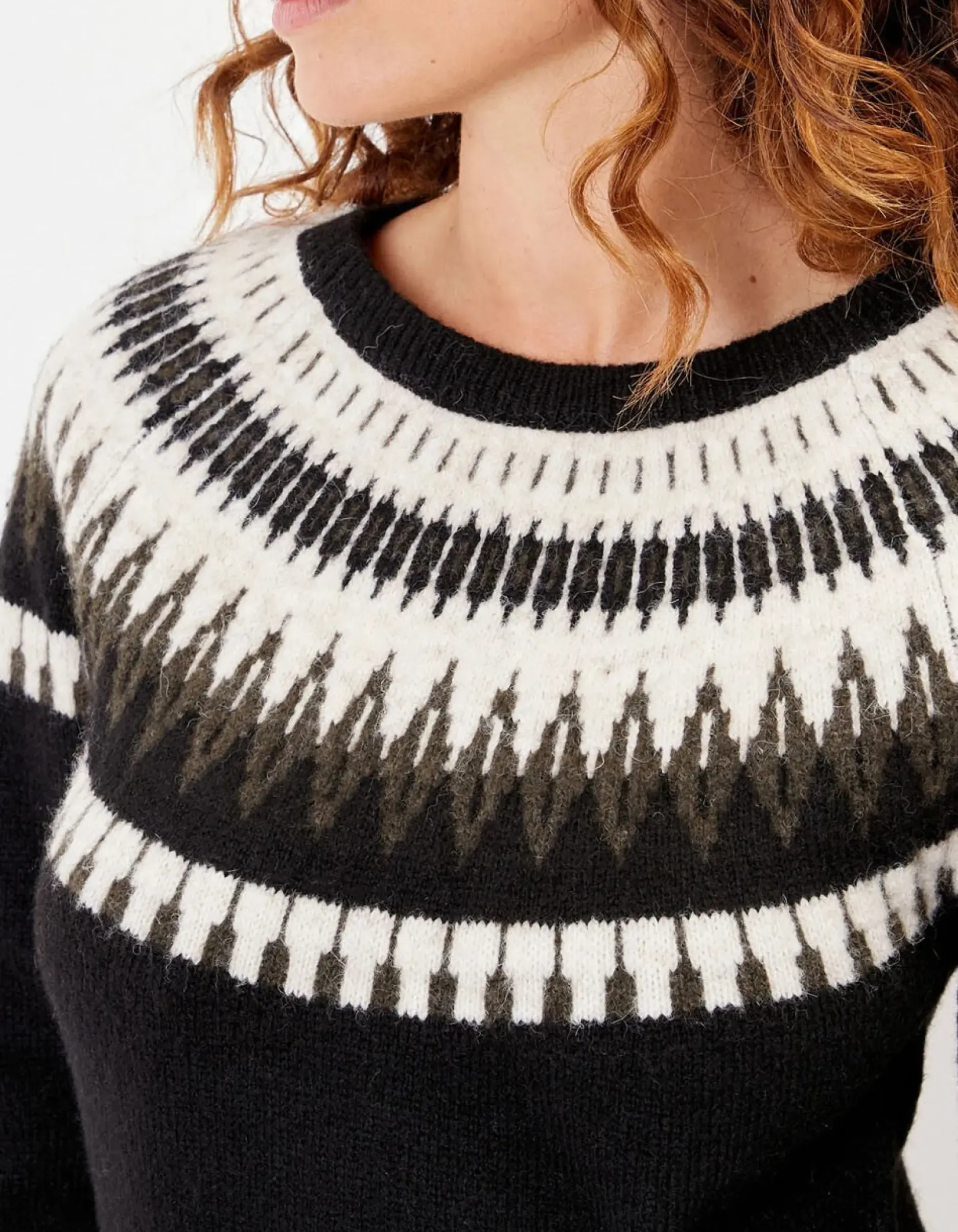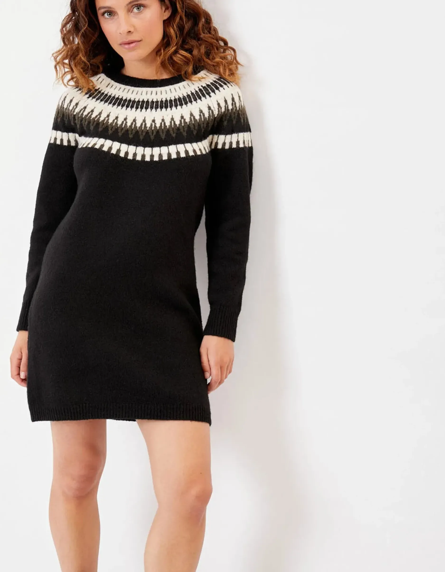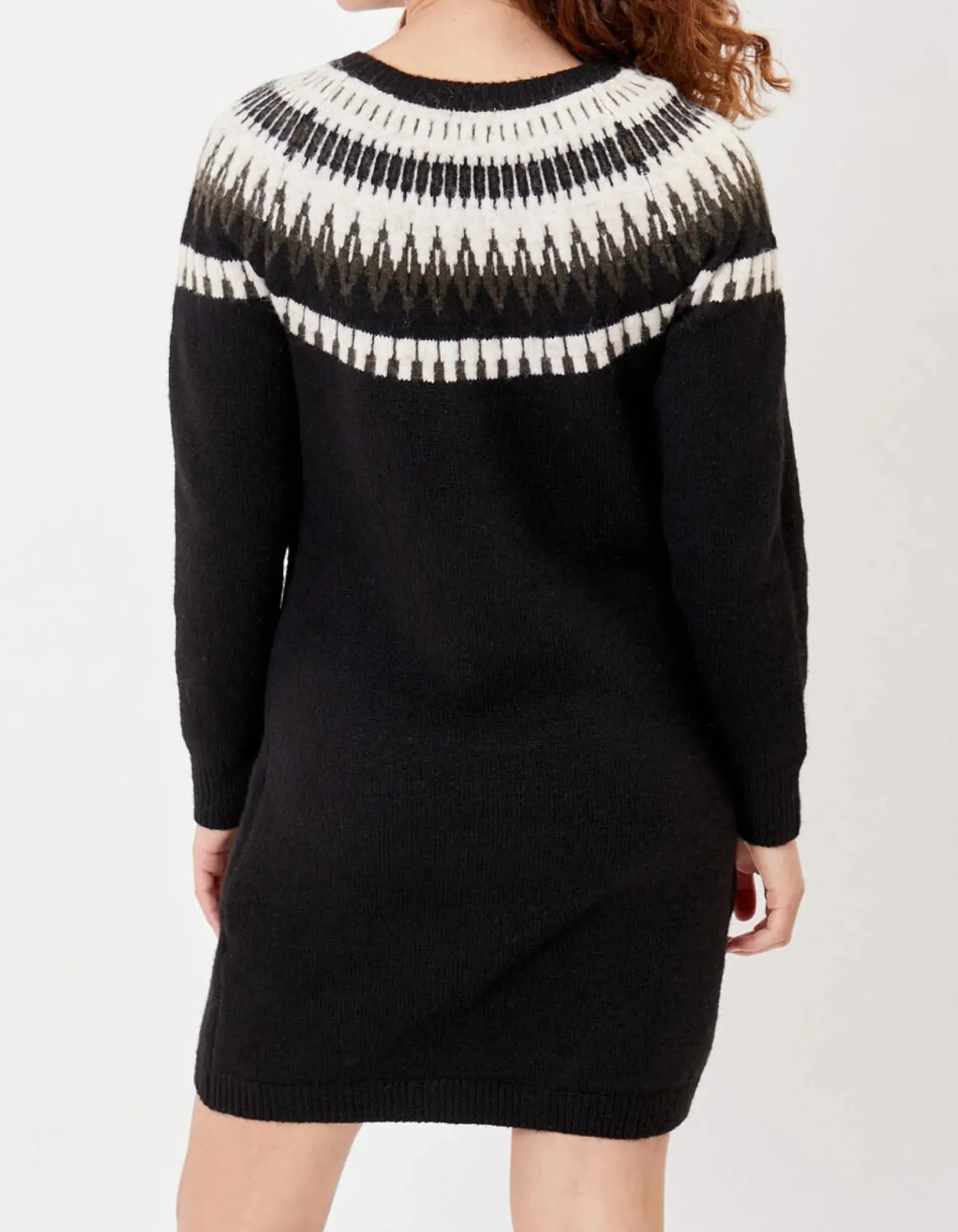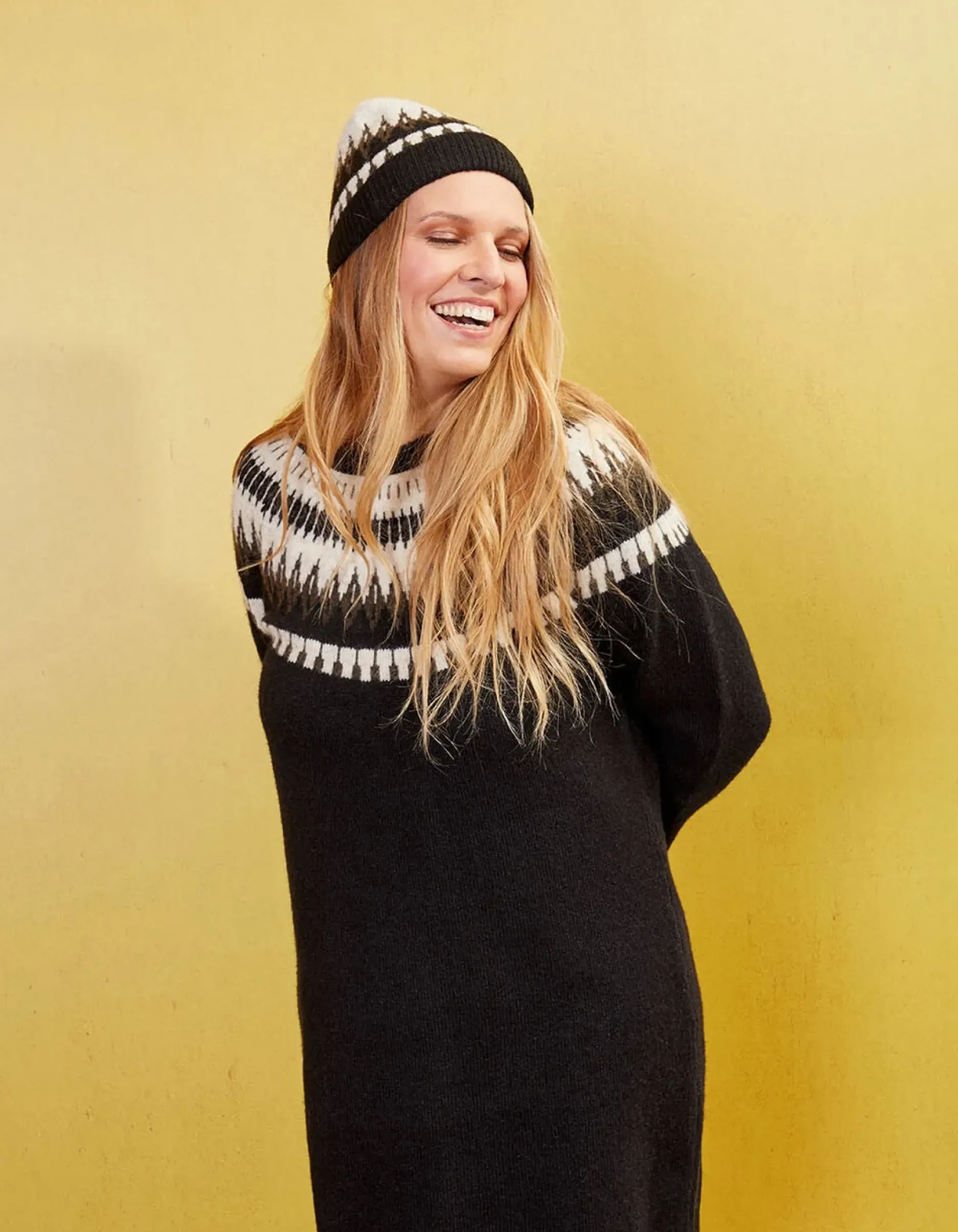 Optez pour l’élégance et la chaleur avec notre robe pull jacquard imprimé Vili Black ! Cette robe à coupe droite et col rond est idéale pour les journées froides. Dotée de manches longues raglan et d’un plastron tricoté en jacquard autour du col, elle se distingue par son motif graphique et intemporel. Sa matière douce et chaude vous assure un confort optimal tout au long de la journée. Avec sa coupe élégante et son imprimé chic, elle peut se porter aussi bien seule qu’avec des collants opaques pour un look tendance.