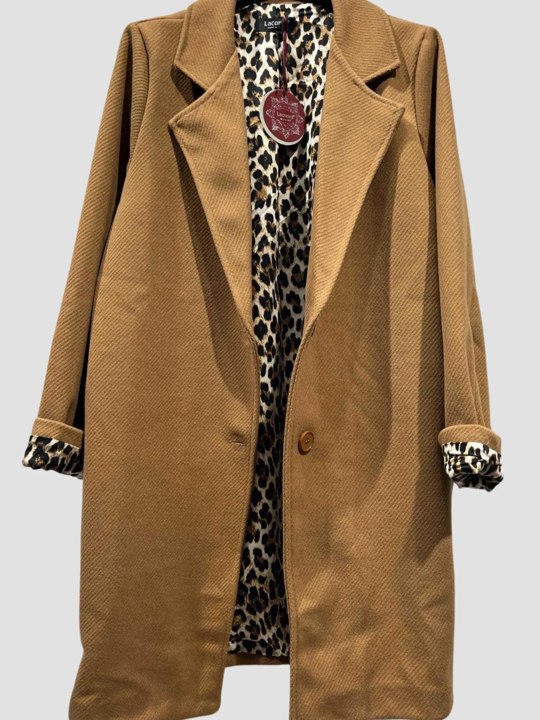 Ce manteau doublé Léo en polyester est un ajout élégant à votre garde-robe. Avec son col blazer et ses revers léopard, il apporte une touche de style unique. Disponible en noir et en camel, il convient aux tailles 36 à 44 pour un look parfait en toute saison.