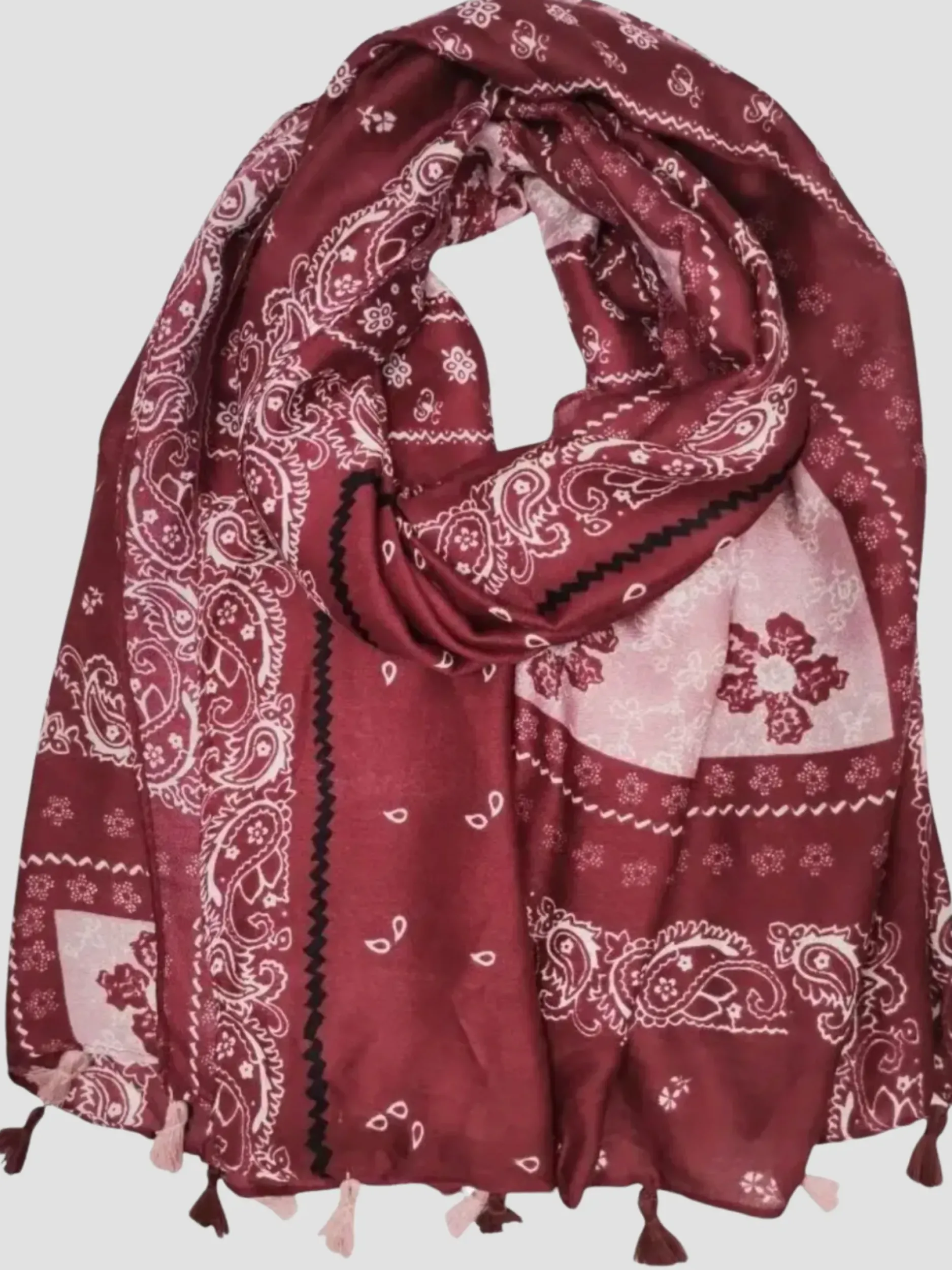 Découvrez le Foulard Kai, un accessoire élégant et polyvalent imprimé paisley avec des pompons. Fabriqué en viscose et coton, il offre un confort optimal. Mesurant 90cm x 180cm, il peut être porté de différentes façons pour compléter votre tenue. Disponible dans une variété de couleurs. Ajoutez une touche de style à votre garde-robe avec le Foulard Kai !