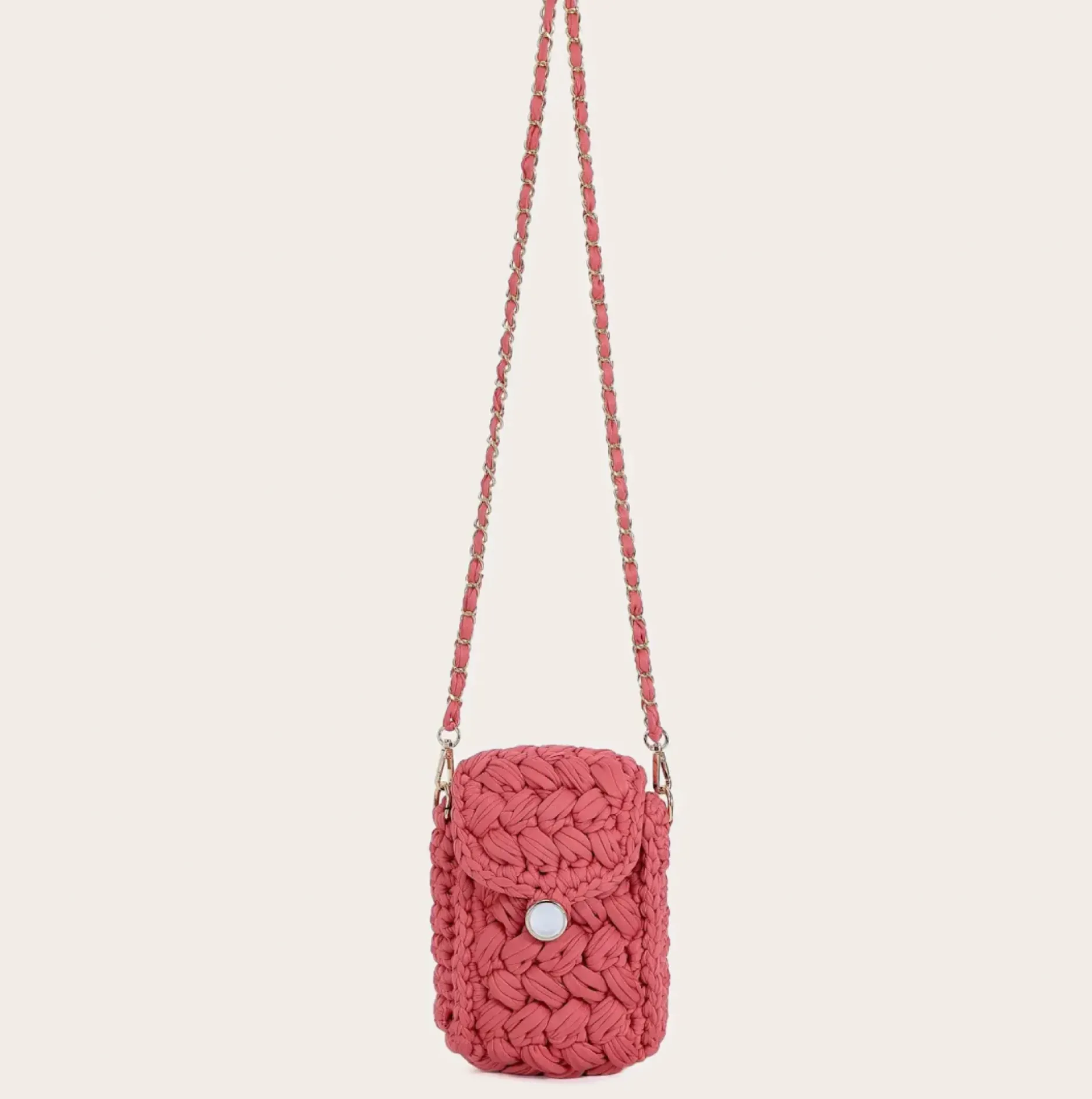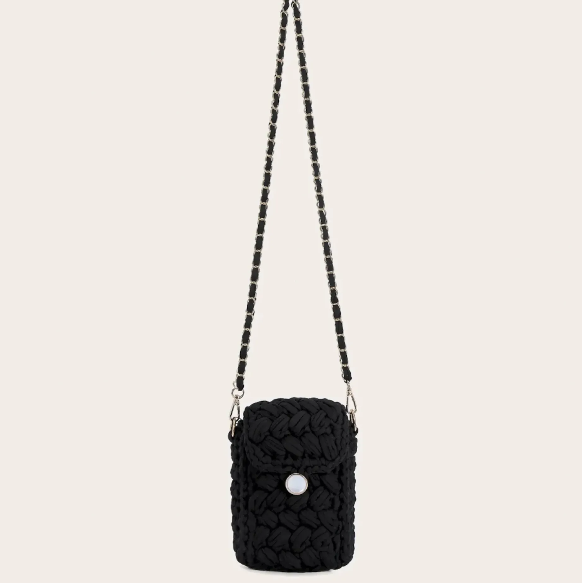Emmenez votre look au niveau supérieur avec la pochette tressée Loby ! Le fermoir nacré et l’anse en chainette ajoutent une touche de luxe à cette pochette bandoulière 12x15x5cm en tissu uni. Disponible en plusieurs coloris, elle vous accompagnera partout avec style et originalité !