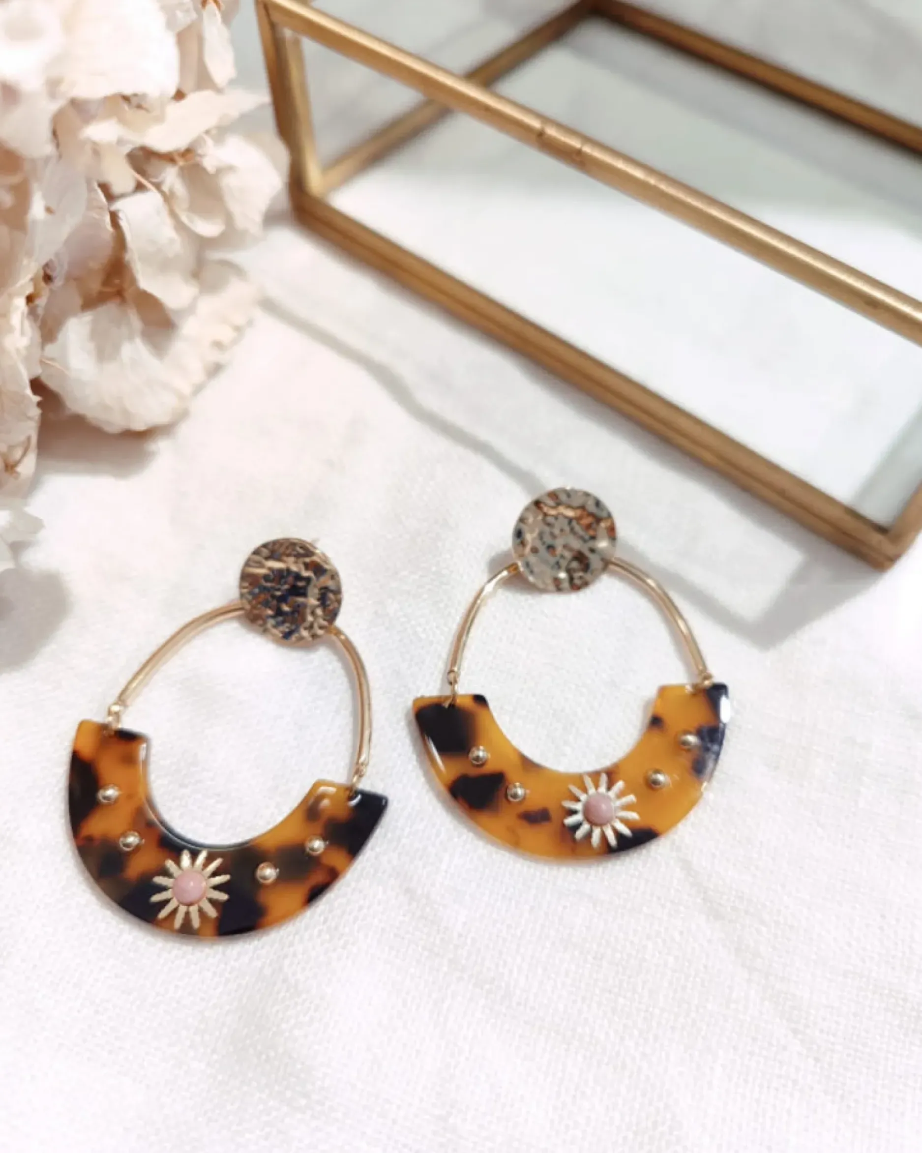 Ces boucles d’oreilles en résine léopard et acier inoxydable doré sont une alliance parfaite d’élégance et d’originalité. Les détails en résine léopard apportent une touche sauvage, tandis que les accents dorés ajoutent une finition lumineuse et sophistiquée. Leur conception légère garantit un confort optimal tout au long de la journée.