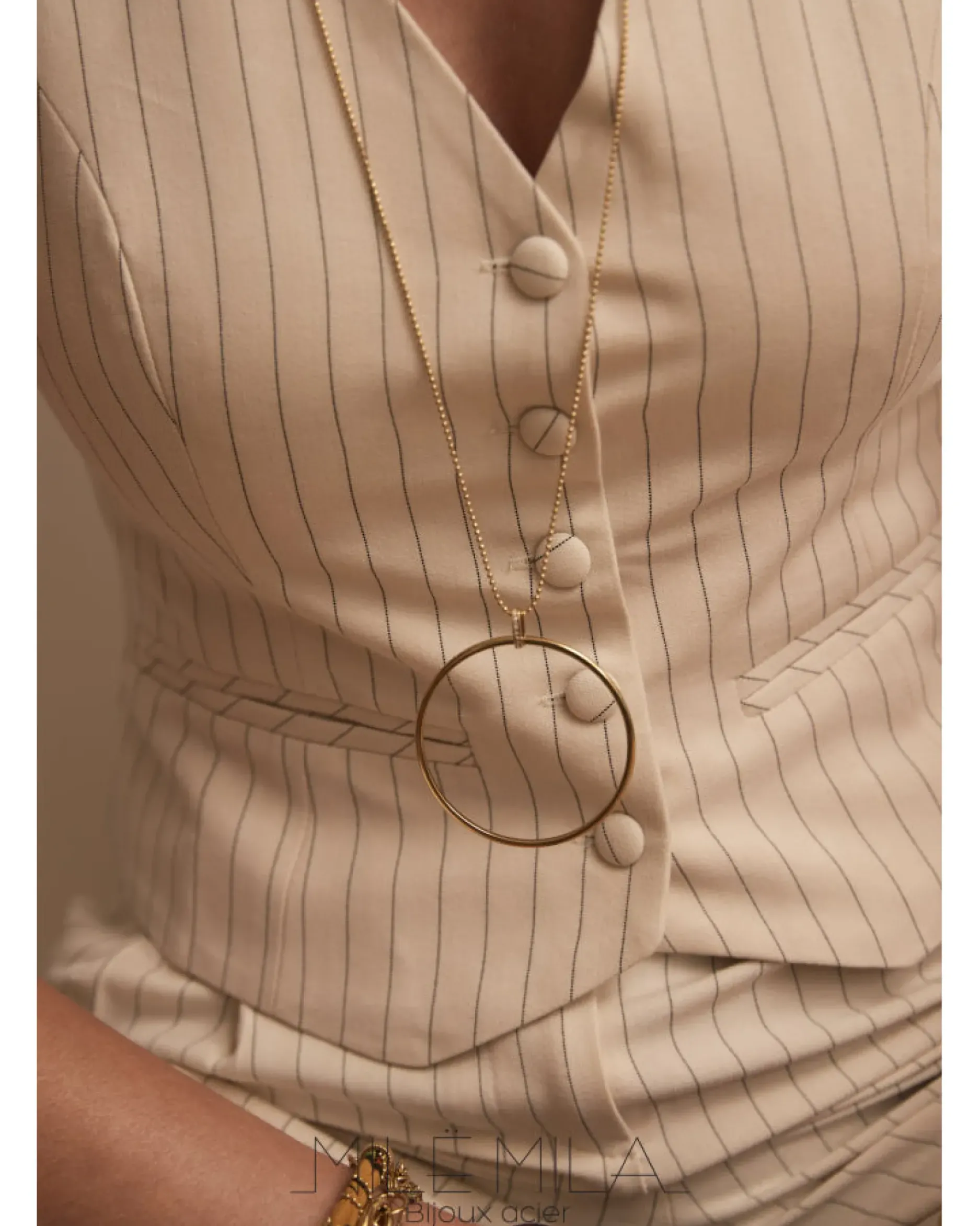 Découvrez la beauté du Sautoir Anneau Strass ! Fabriqué en acier inoxydable, ce sautoir élégant est doté d’un grand anneau strass doré qui ajoutera une touche de glamour à votre tenue. Parfait pour toutes occasions, ce bijou vous fera briller de mille feux.