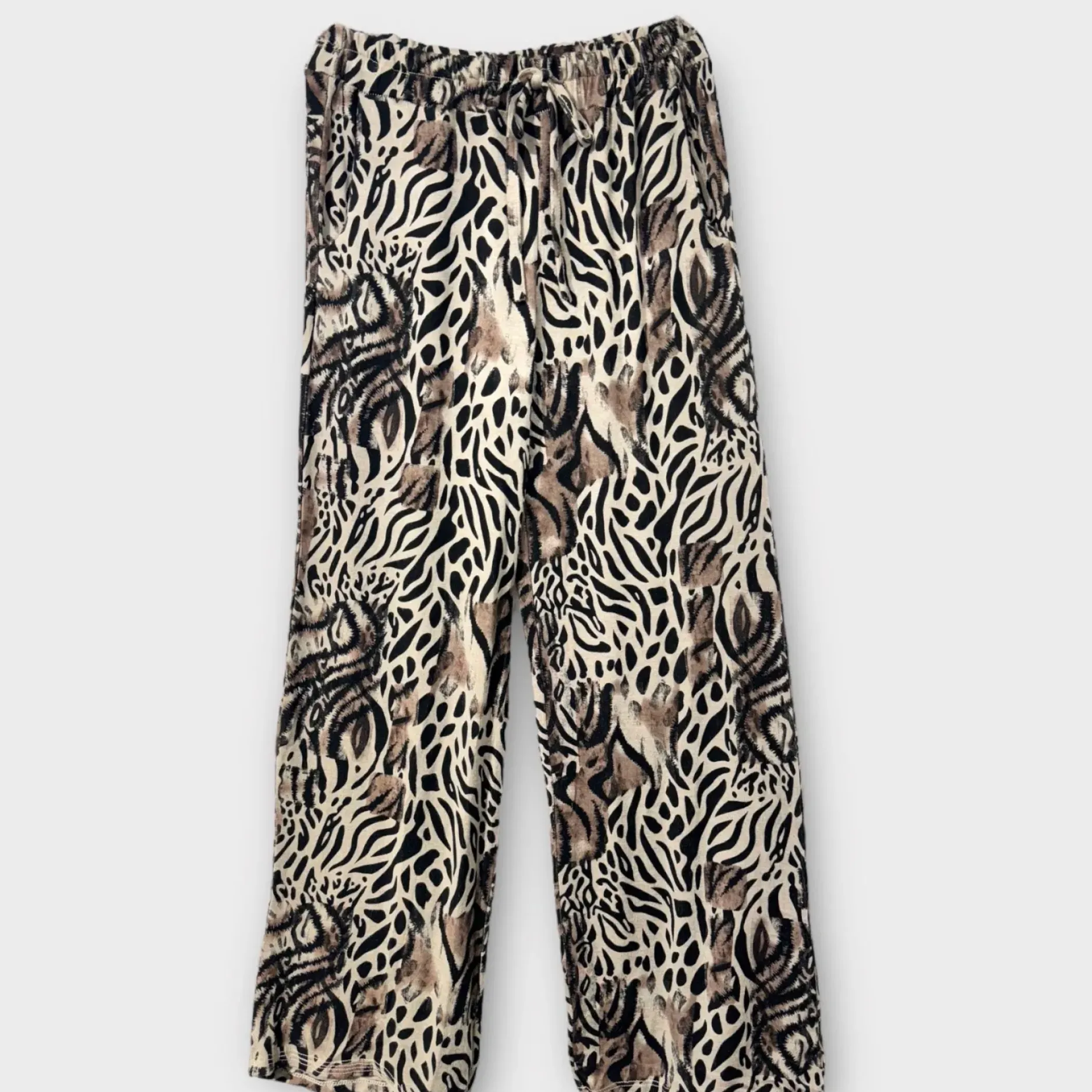 Découvrez notre pantalon fluide imprimé animal pour une touche d’audace dans votre garde-robe ! Ample et taillé dans une matière douce et légère, il s’adapte à toutes les morphologies grâce à sa taille élastique. Disponible en taille unique du 36 au 44, il vous apportera confort et style.