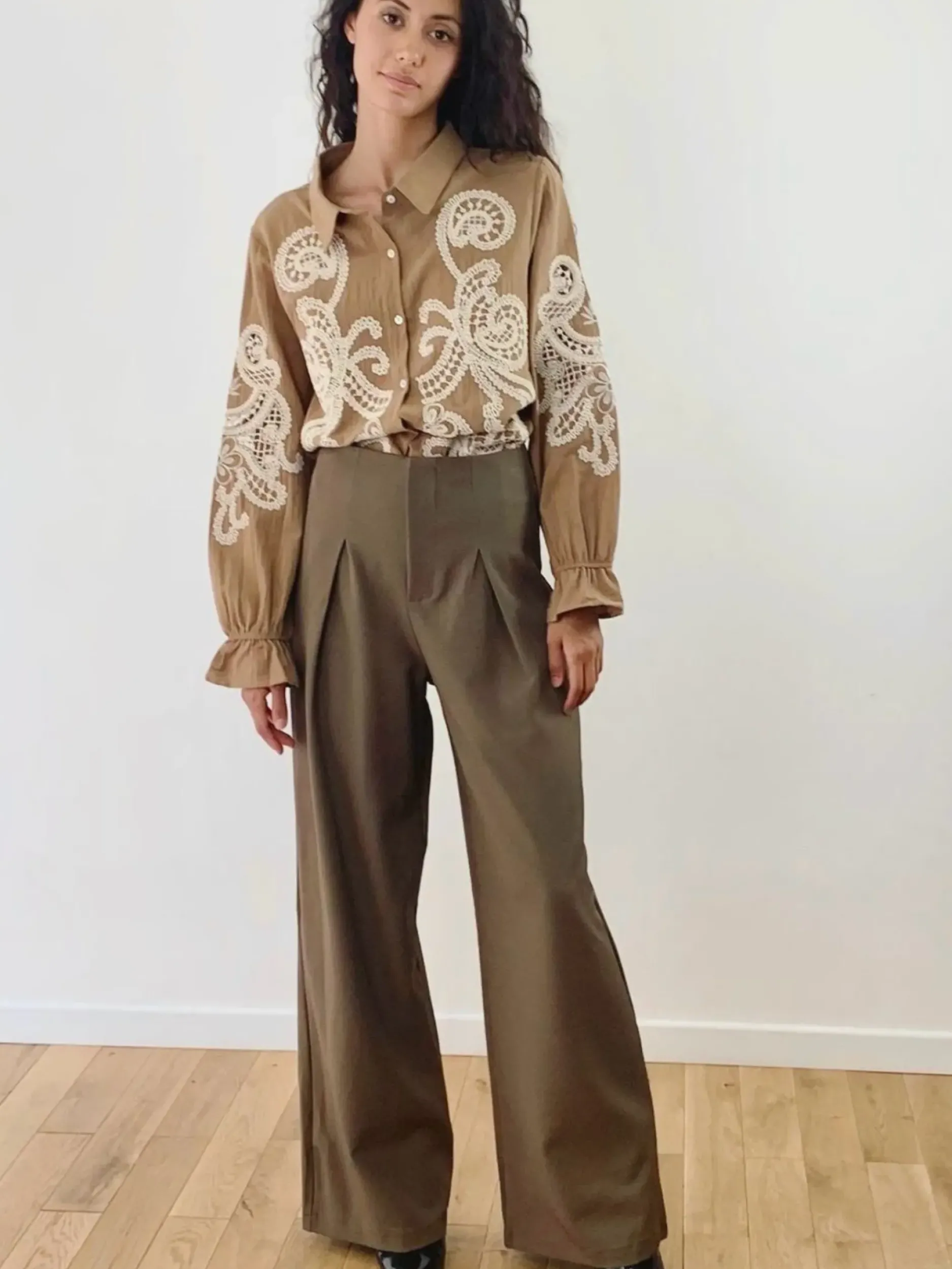 Découvrez la chemise Amy, avec sa broderie délicate et ses manches froufrous, pour un look élégant et féminin. Fabriquée en coton et disponible en tailles S/M et M/L, elle est confortable et facile à porter. Parfait pour une journée décontractée ou une soirée chic !
