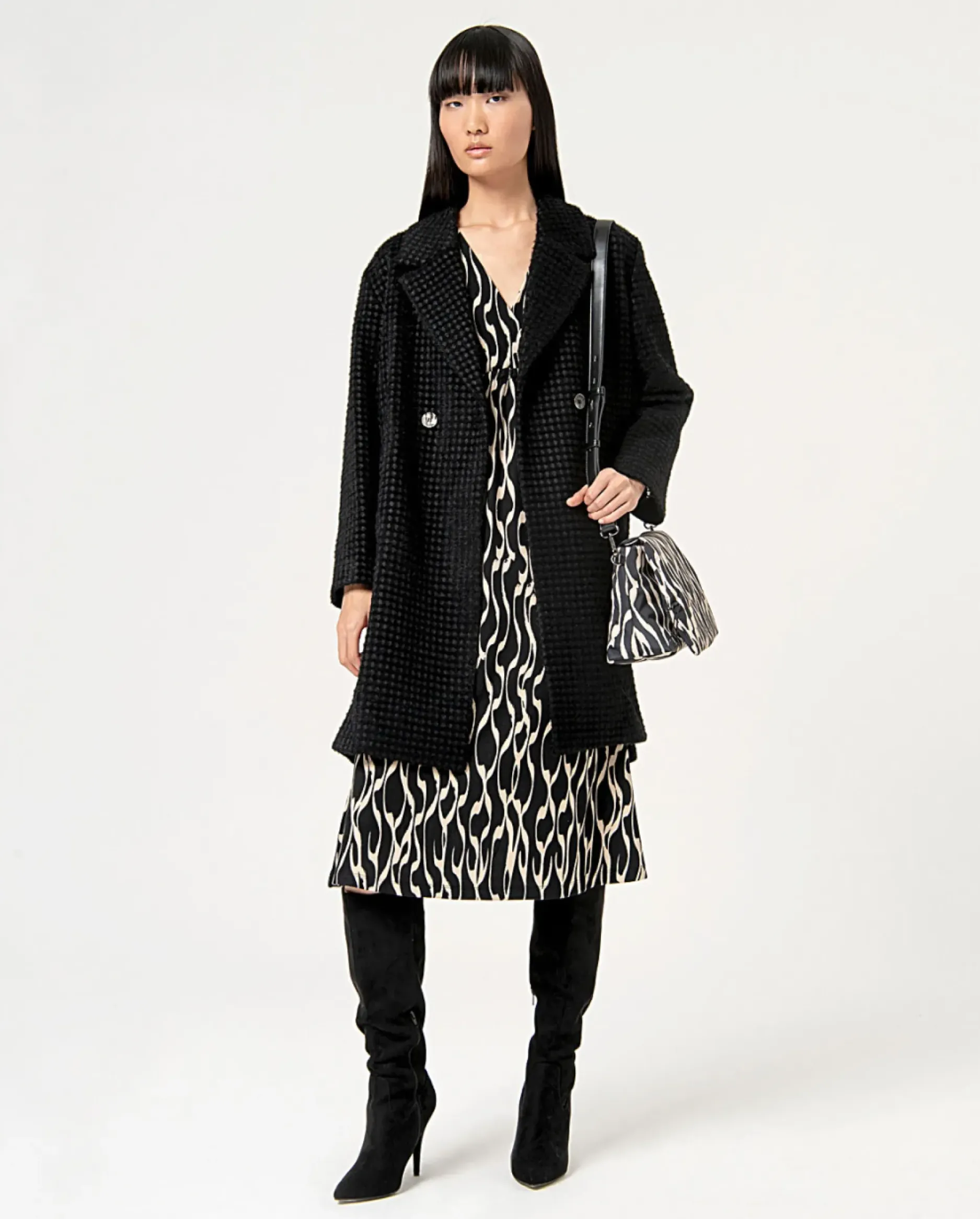 Le manteau Sefi est l’ultime mélange de style et de fonctionnalité. Avec sa structure élégante et son double boutonnage, il vous gardera au chaud tout en étant à la mode. Fabriqué à partir de 70% de polyester recyclé et de 30% de polyamide, il est également respectueux de l’environnement. Disponible en tailles XS à XL.