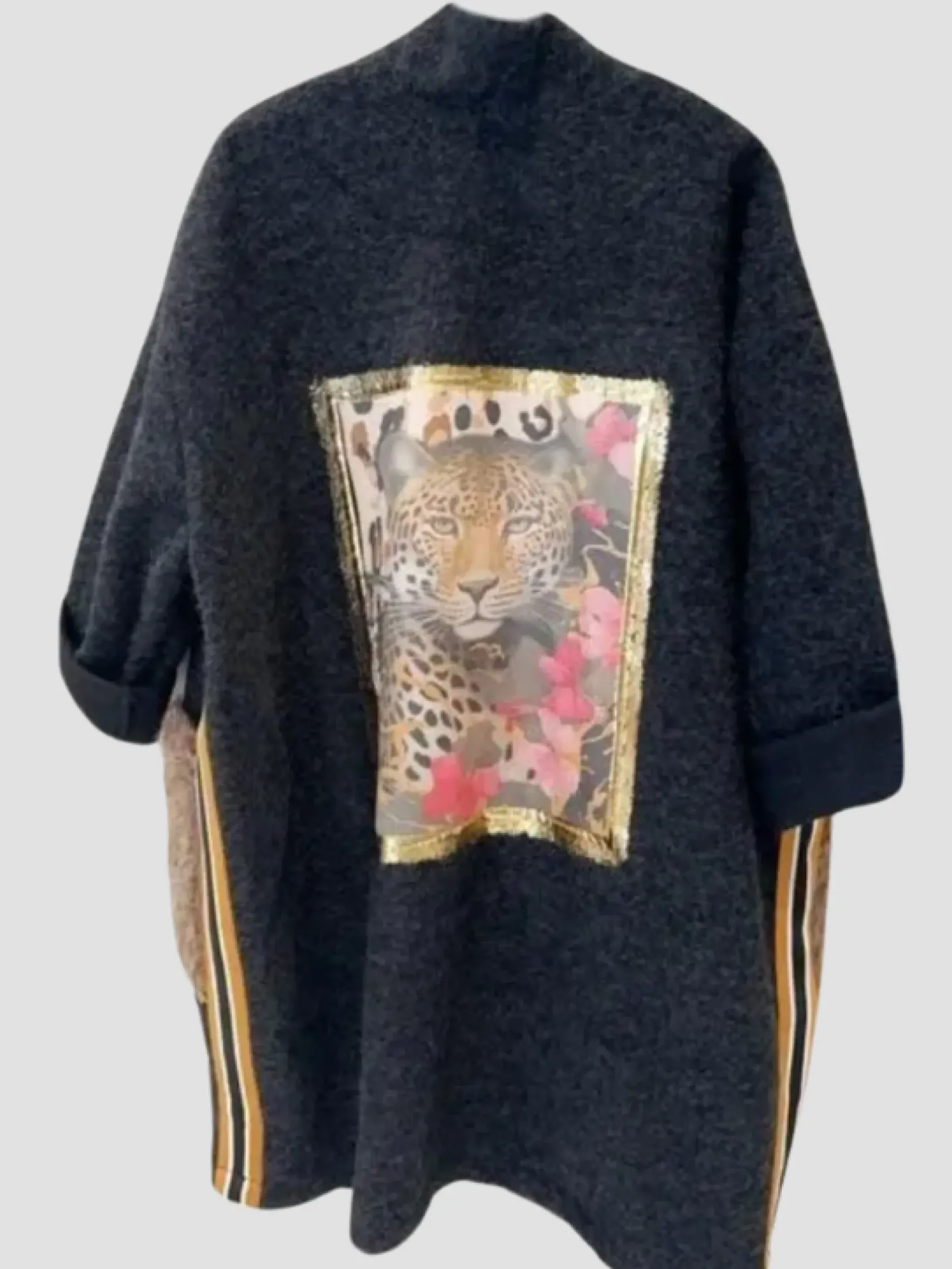 Adoptez un look tendance et confortable avec notre veste oversize en bouclette noir. Les manches longues vous gardent au chaud, tandis que les grandes poches fourrées ajoutent une touche de style. Avec son imprimé unique dans le dos et sa taille polyvalente, cette veste est parfaite pour les tailles 44 à 52. Obtenez le look ultime aujourd’hui !